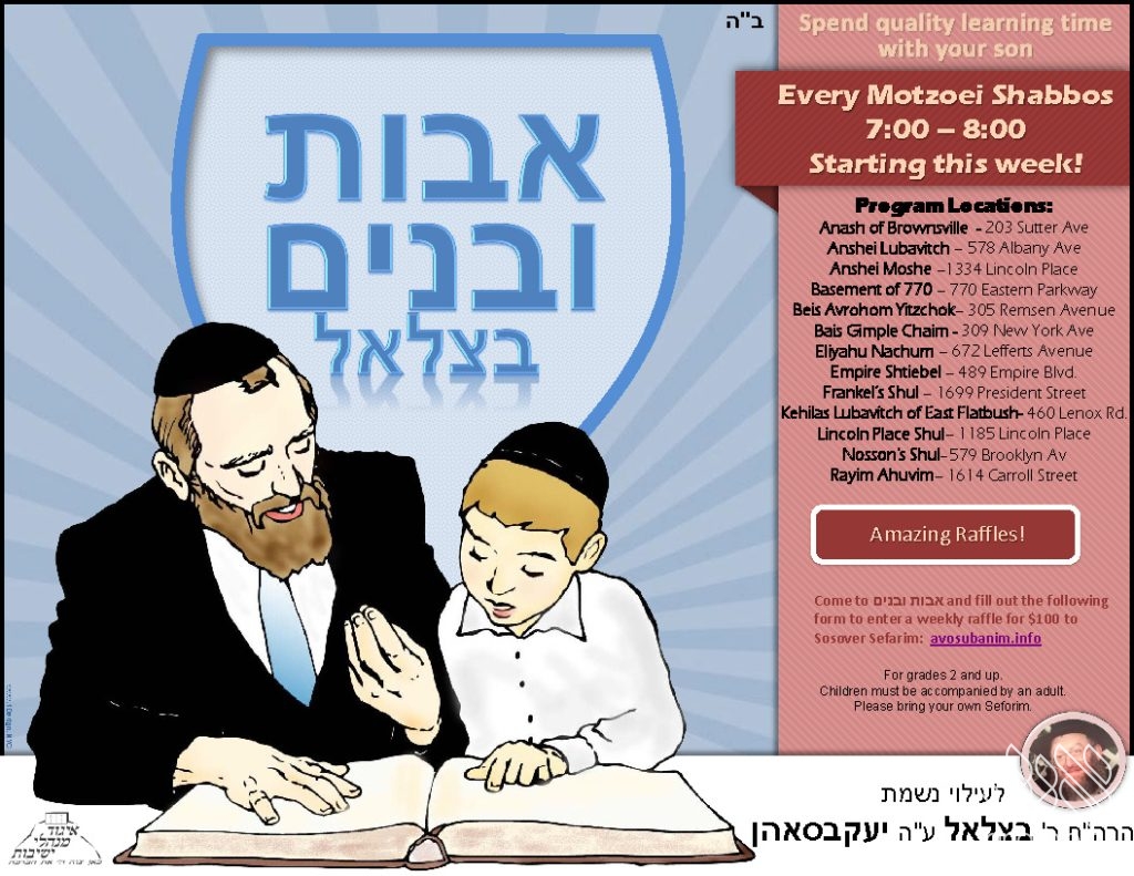 The Avos Ubanim program is known as Avos Ubanim Betzalel in loving memory of Reb Betzalel Jacobson OBM, dedicated by his son Yerachmiel Jacobson.