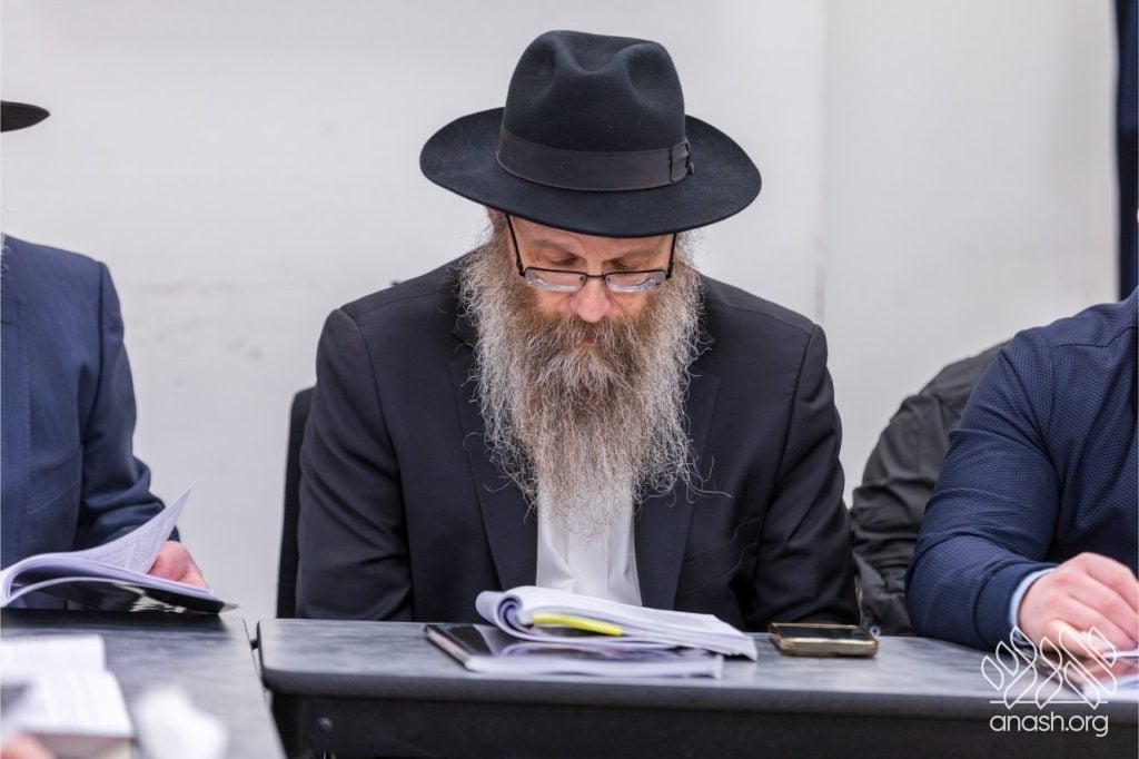 For a full hour, Rabbi Zinner examined the students and expressed admiration for their great dedication to the practical study of halacha — particularly on the part of people who work during the week to earn a livelihood, yet uphold both halves of the partnership: that of Yissachar and that of Zevulun. He encouraged them to continue investing in their studies, and paid tribute to the memory of Rabbi Zushe Wilhelm a”h, who served as director of the Machon in the United States and led the revolution in the study of halacha in Chabad.
