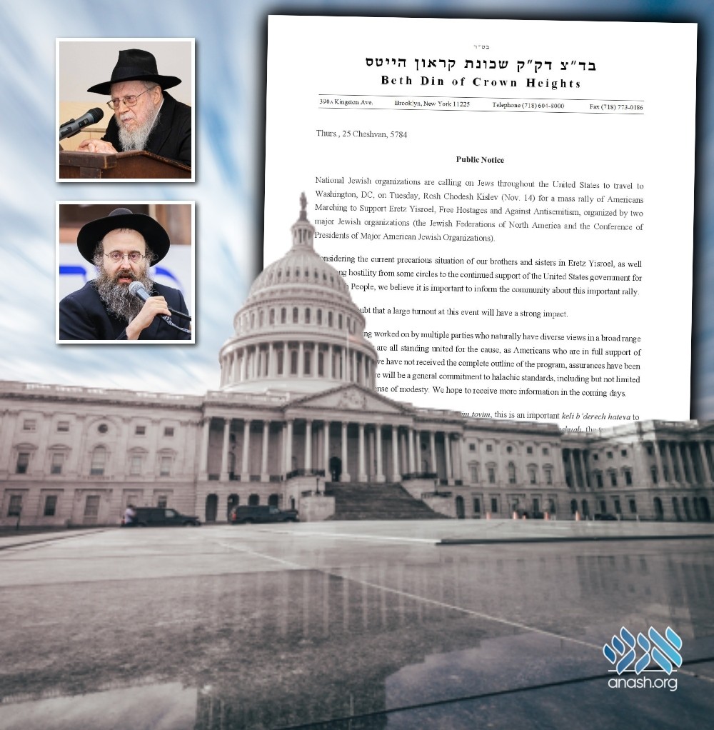 Ahead of a massive planned rally in Washington D.C. for Eretz Yisroel, the Crown Heights Beis Din issued a letter informing the community about the event and stressing its importance.