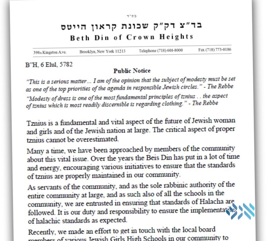 “Recently, we made an effort to get in touch with the local board members of various Jewish Girls High Schools in our community to review their tznius policies and ensure that standards of Torah are appropriately maintained.