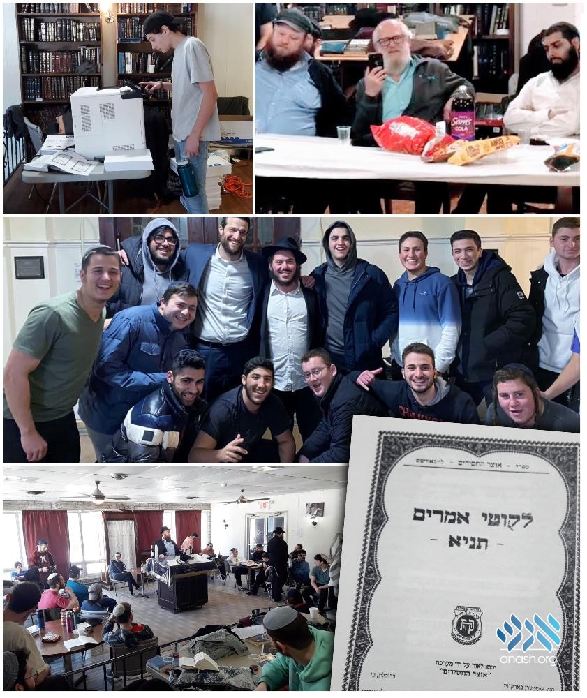 Although having farbrang late the night before, on Wednesday, Chof-Vov Adar, the bochurim and shluchim woke up early to go to mikvah and prepare themselves for the historic occasion of the printing of the Sefer Tanya in Bais Menachem Poconos. The printing of the Tanya was a vital part of establishing Bais Menachem’s new campus, creating a wellspring of Chassidus right in the Poconos. Hanhala lead the bachurim with inspiring words, explaining the importance of printing Tanyas, especially of learning from the Tanyas and how dear this inyan is to the Rebbe. Everyone in yeshiva had the opportunity to participate in the logistics of the printing itself. Shortly, iyH the new Tanyas, bound with a beautiful custom cover, will be available to Wilkes friends and supporters of Bais Menachem.