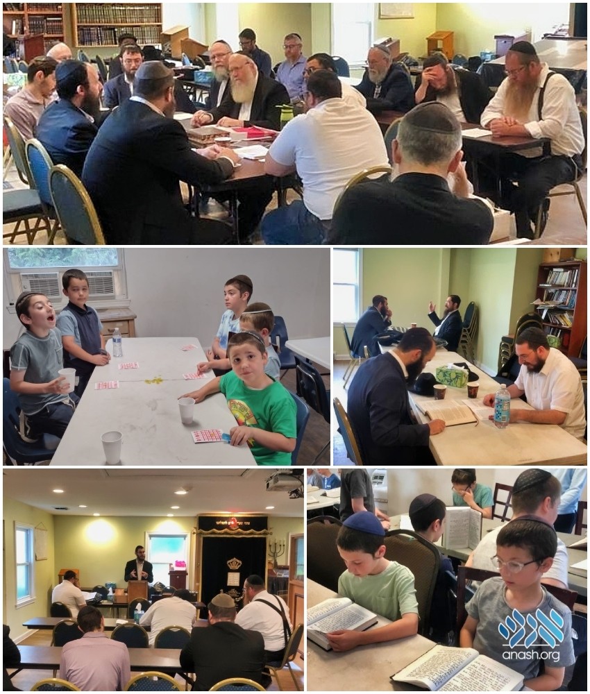 While the fathers are engaged in learning, a Tzivos Hashem camp is held simultaneously for the boys, where they learn Mishnayos and Gemara, and engage in fun programs and activities.
