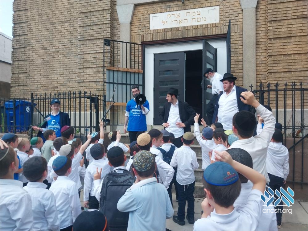 The campers received a tour of the shul, where the Frierdiker Rebbe had said the maamer 95 years earlier, sang a few niggunim, and recited the 12 pessukim. Afterwards, the older bunks had fabrengens with their staff at various Shluchim around the area, while the younger division had a special rally, including a special video presentation prepared by the staff.
