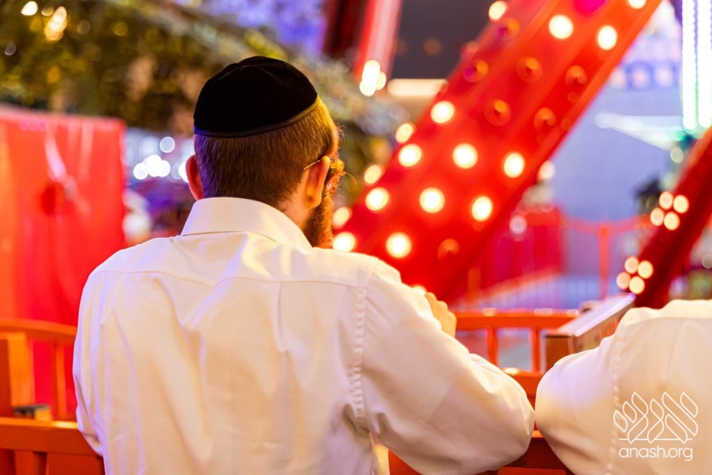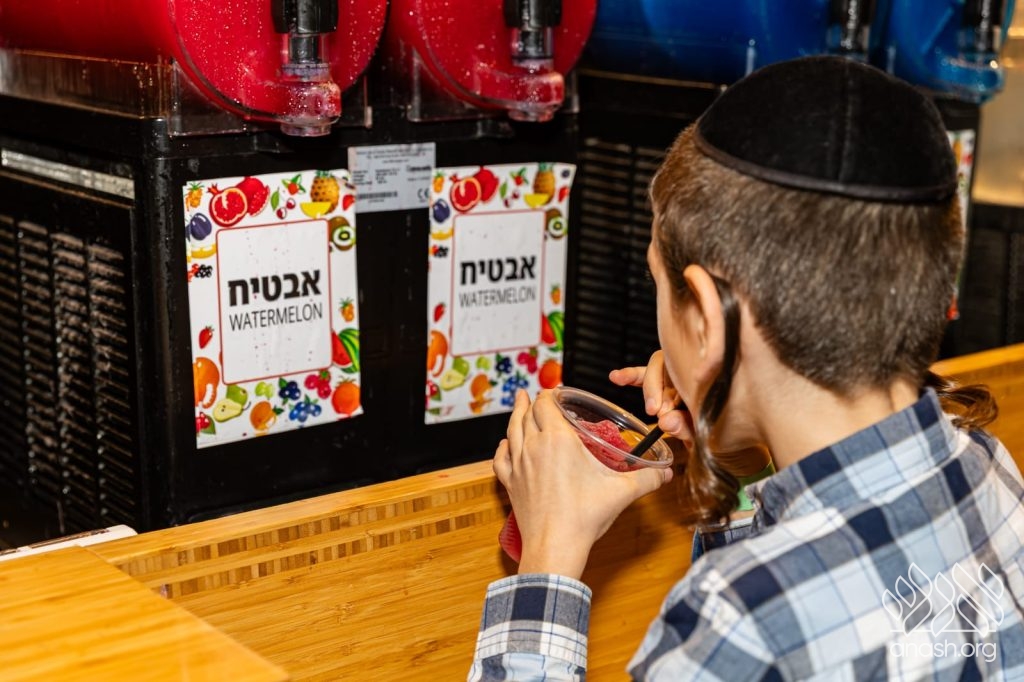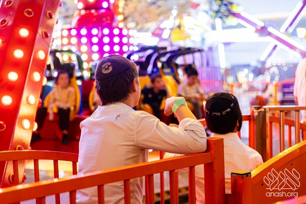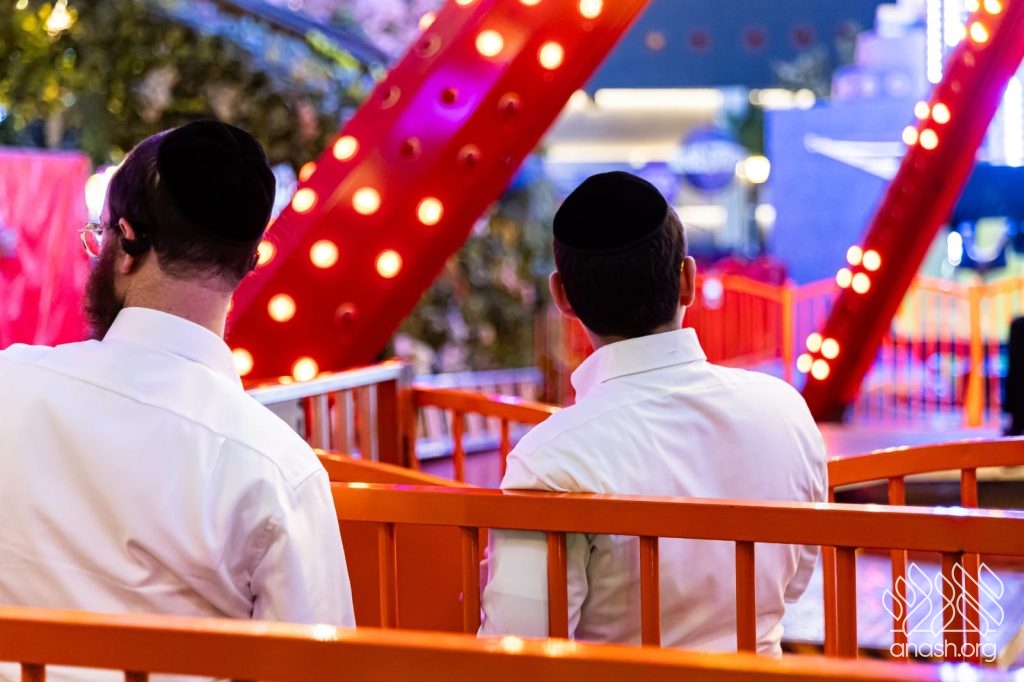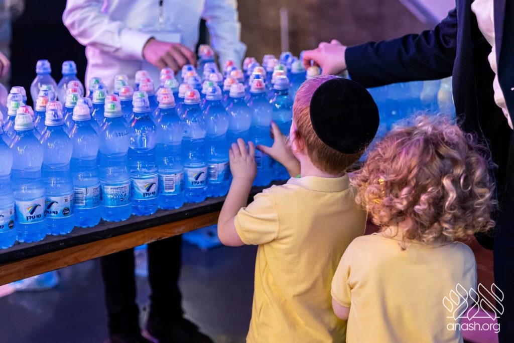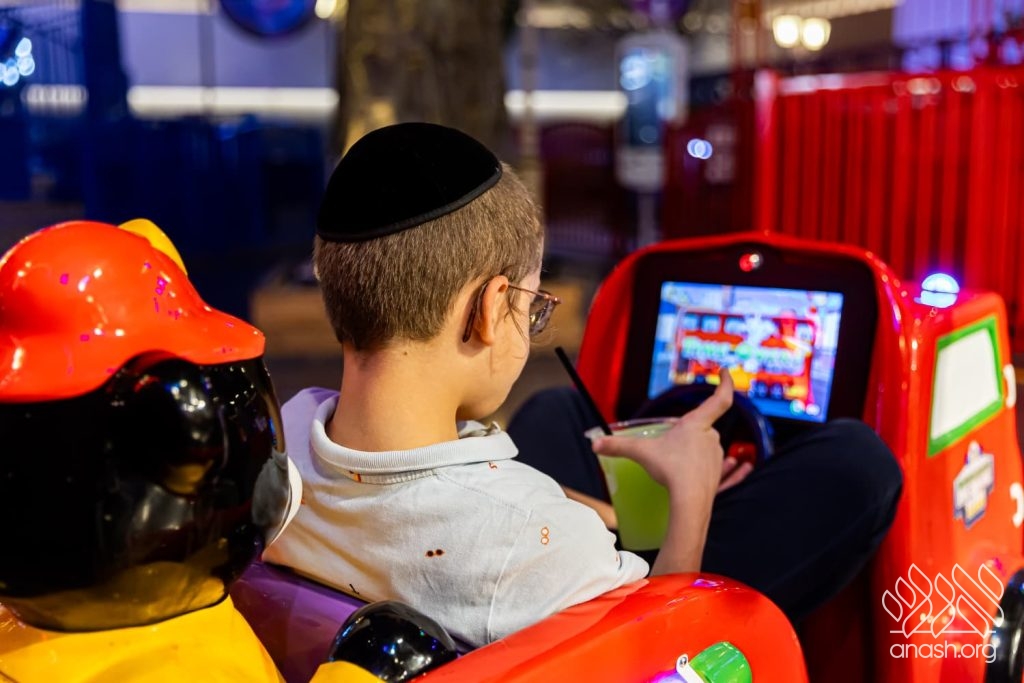 The “Mitzvah-Land” park was transformed into a festive wonderland, complete with educational exhibits, creative workshops, and a lavish all-day buffet. The highlight of the program was a spirited Chassidic concert featuring Motti Goldman, Eliran Elbaz, and Shaya Brim, filling the venue with joyous song and dance.