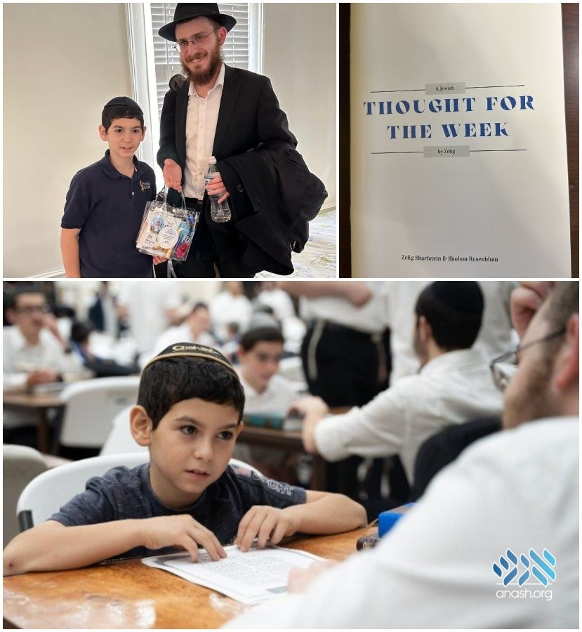 In the leadup to Zelig’s bar mitzvah, Rabbi and Mrs. Sharfstein together with some family members, prepared a softcover book featuring the weekly parsha articles based on Zelig and Sholom’s study sessions. Cheerfully designed with a picture of the pair learning together in person, ‘Thought For The Week’ was given out at the Bar Mitzvah as a testament to Zelig’s hard work and dedication, sharing the inspiration with all the guests.