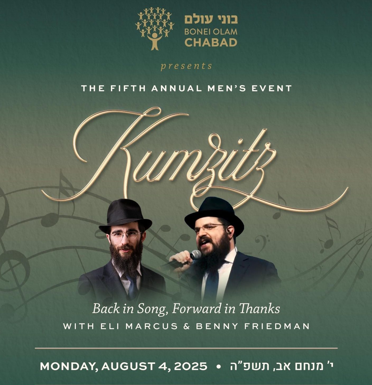 To support Bonei Olam Chabad or RSVP for the Annual Men’s Kumzitz, click here.