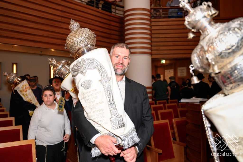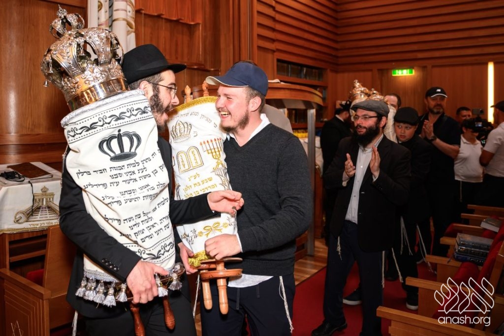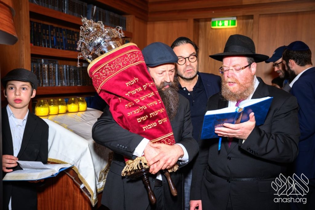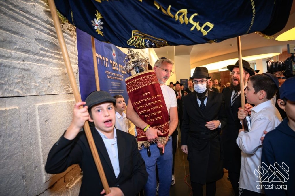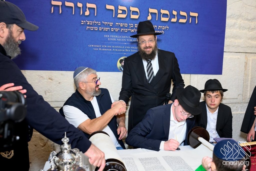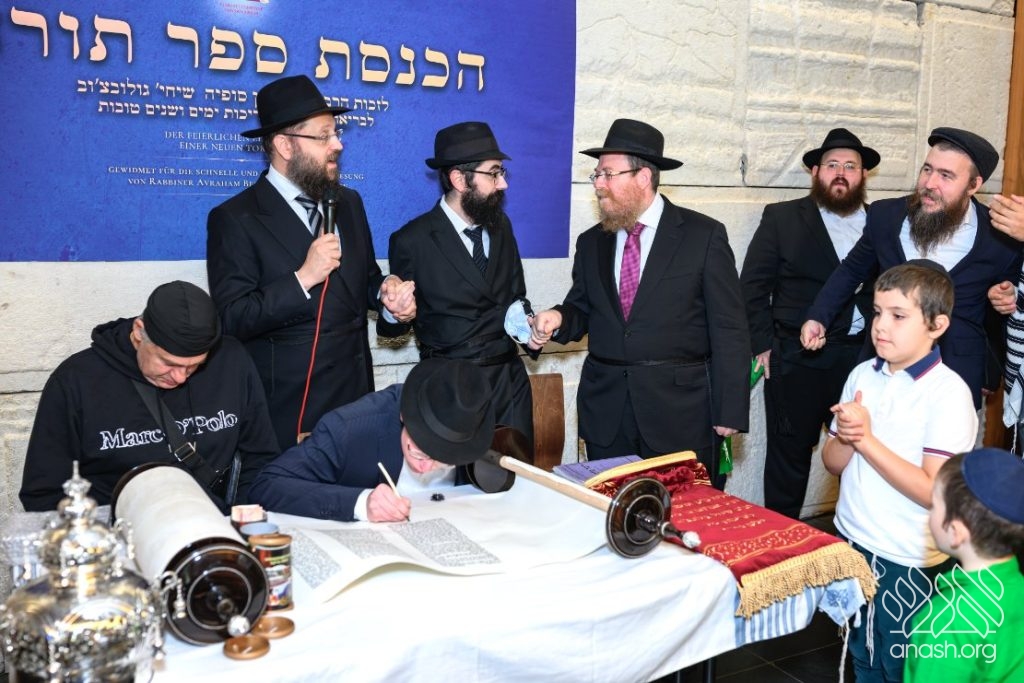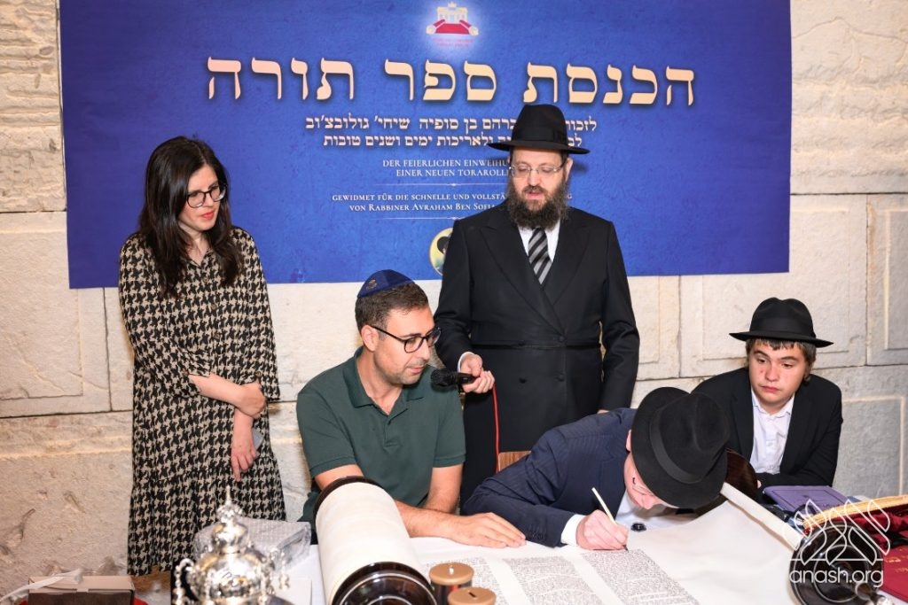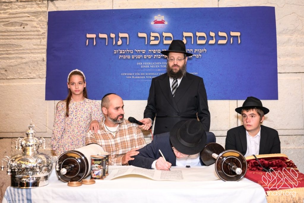When Berlin shliach Rabbi Avraham Golovacheov was critically ill, the community rallied and undertook writing a Sefer Torah in his zchus. Recently, the Torah was completed, and hundreds celebrated with a joyous siyum, marching through the streets of Berlin and gathering at the local Chabad House.