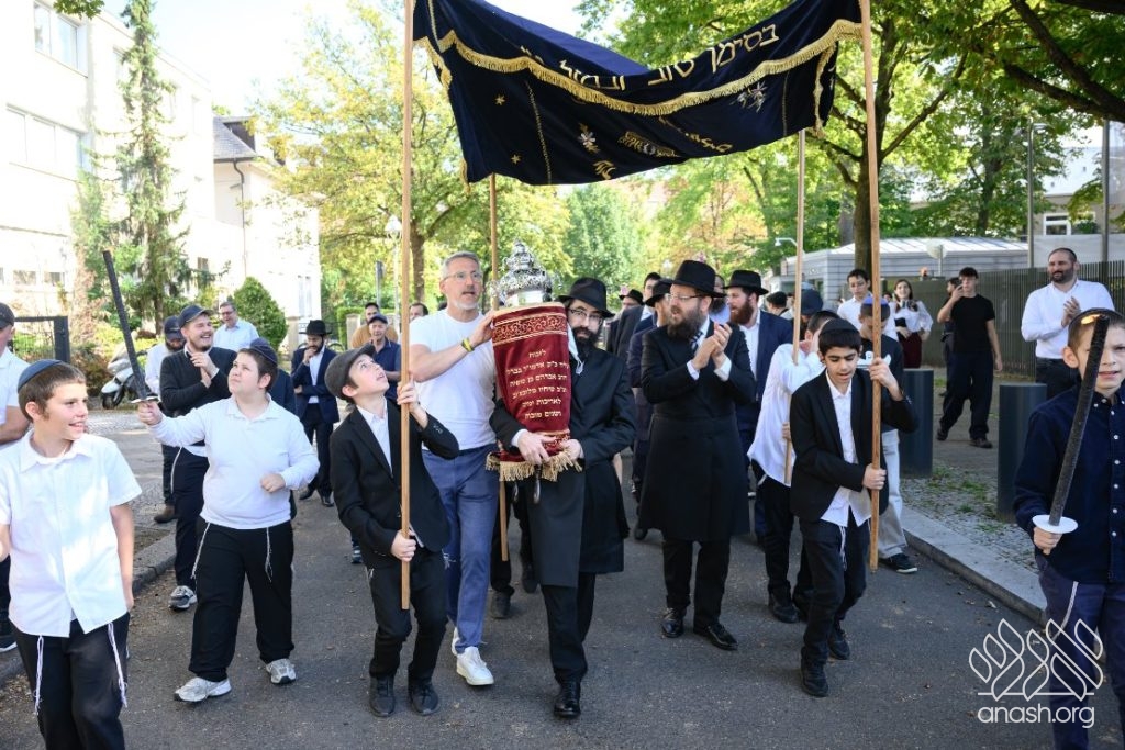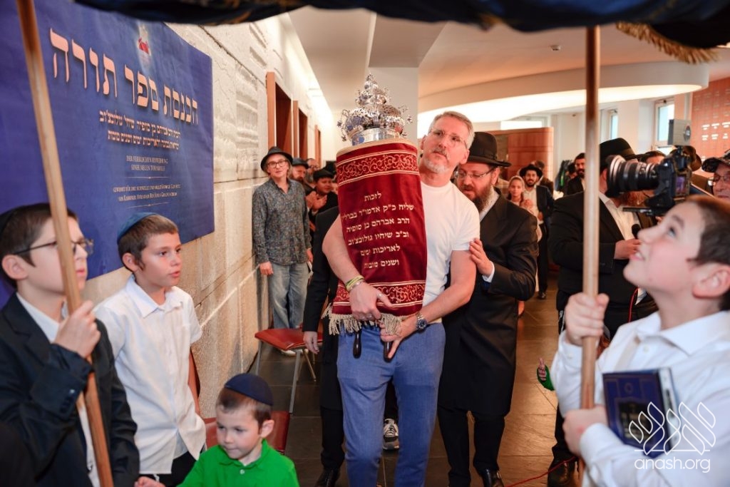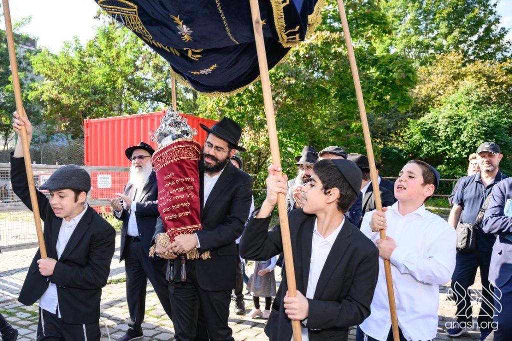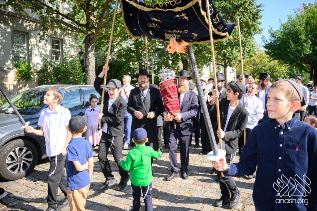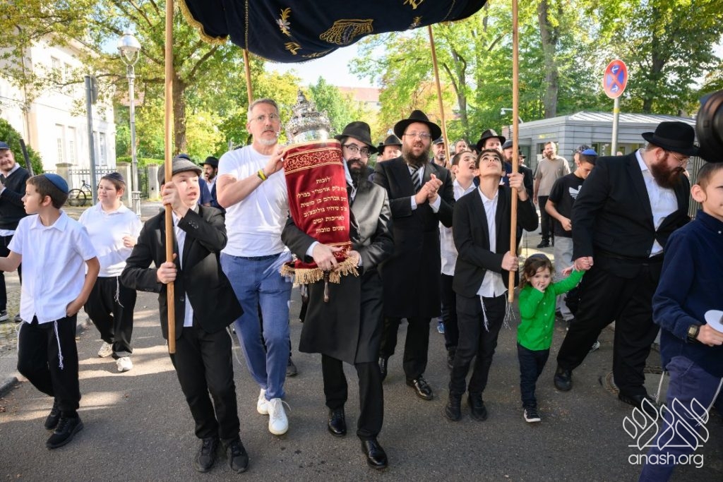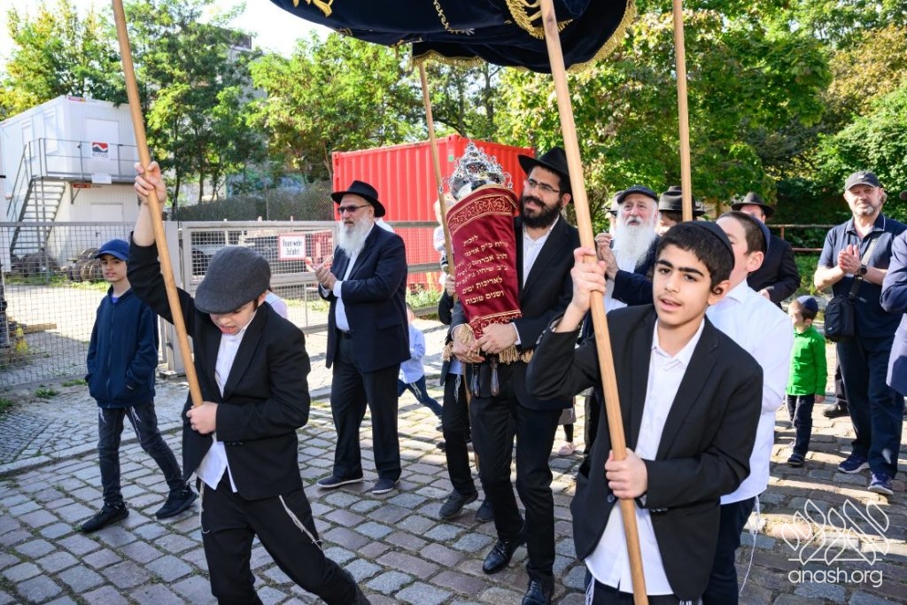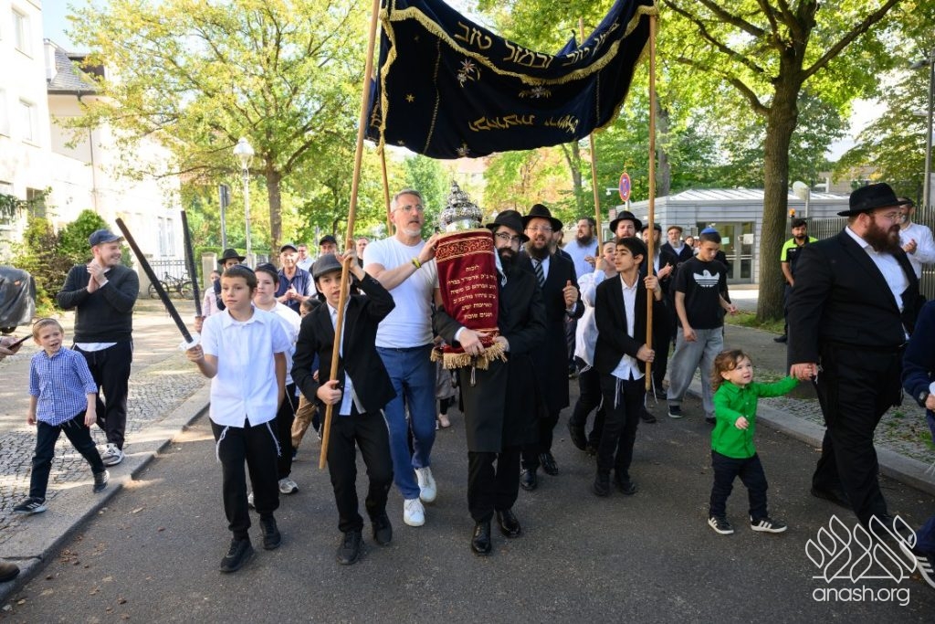 Recently, the Torah was completed, and hundreds from the Berlin Jewish community gathered to celebrate with a joyous siyum, marching through the streets of Berlin and rejoicing at the local Chabad House directed by Shliach Rabbi Yehuda Teichtal.