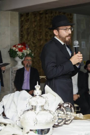 During the speech of the city rabbi, Rabbi Ephraim Kolpak, on behalf of the entire community, he thanked Rabbi Wagner, the donor and his family, and the Scheiner family for designing the prestigious Torah scroll mantel. After years of activity and shlichus in this city about a decade and a half ago, and the fruits of their blessed peulos are evident to this day.