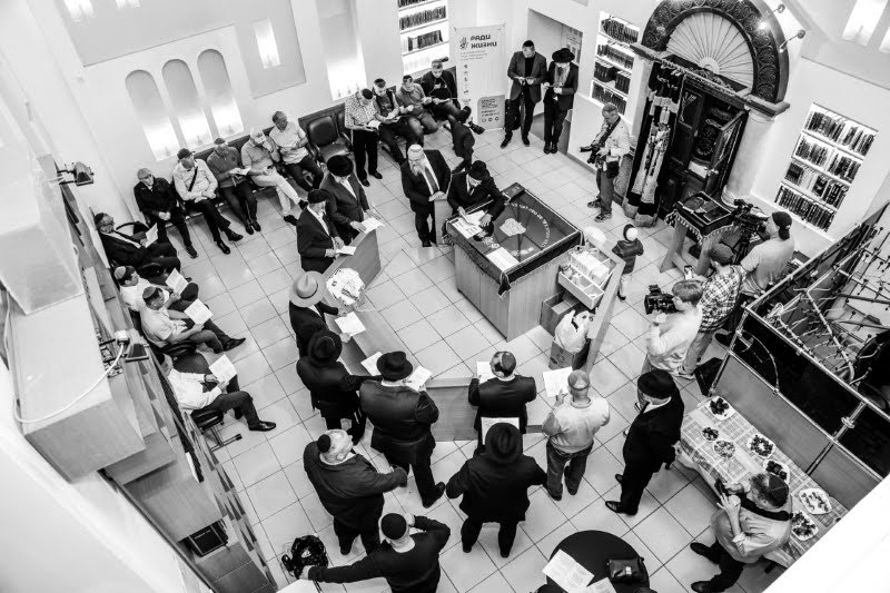 With great emotion and joy, the word spread among the community members in the city that they too would soon receive a Torah scroll, and indeed in the midst of the month of mercy and forgiveness, a historic event was held in the city to complete the writing of the letters and introduce a new and magnificent Torah scroll. A large procession made its way throughout the city – where signs can still be found in Yiddish – the official language of the district. The procession continued to the synagogue building, which serves the city’s Jews on a daily basis.