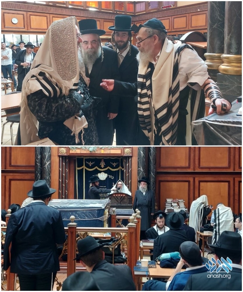 On his current trip, the Biala Rebbe was also invited to address the bochurim following shacharis and he spoke for a few minutes, followed by a warm conversation with Rosh Yeshiva Harav Ezra Schochet.
