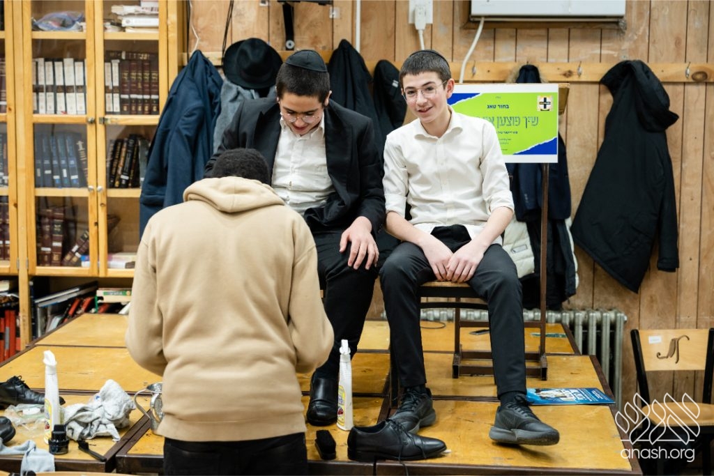 The day featured a variety of stations that guided the bochurim in caring for the items they use throughout the year. Tailors from Troy Organic Cleaners helped bochurim add a button to ensure their jackets close right over left. Belissimo provided hat steaming and cleaning, while See View Optical assisted with glasses adjustments. Bochurim also received tzitzis bendels and participated in a dedicated tzitzis check and repair led by Rabbi Goldberg. A full tefillin tune-up was offered by Machon Stam, and a shoe cleaning station gave the talmidim a chance to upgrade their presentation from head to toe.