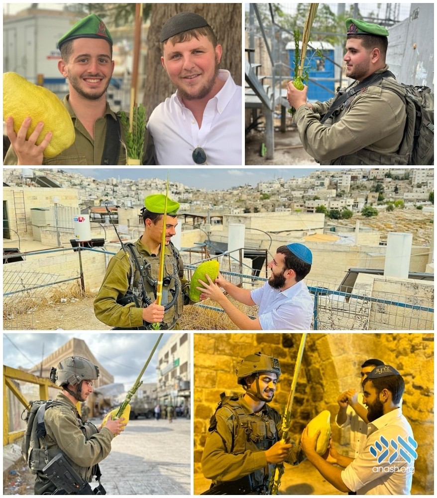 From morning to sunset on every day of Sukkos, the bochurim shluchim of Chevron are with the IDF soldiers in the Chevron area ensuring every one has the opportunity to shake the lulav and esrog.