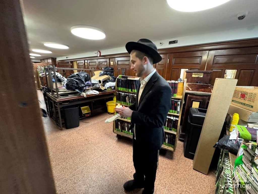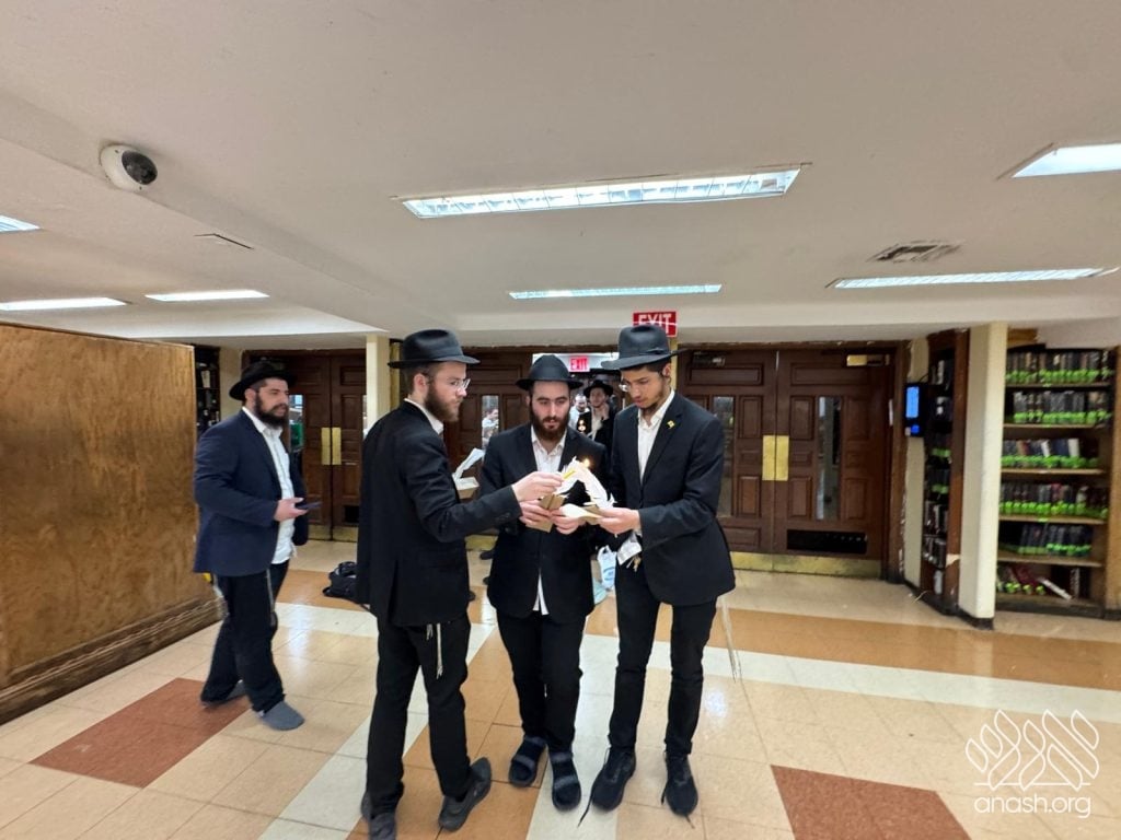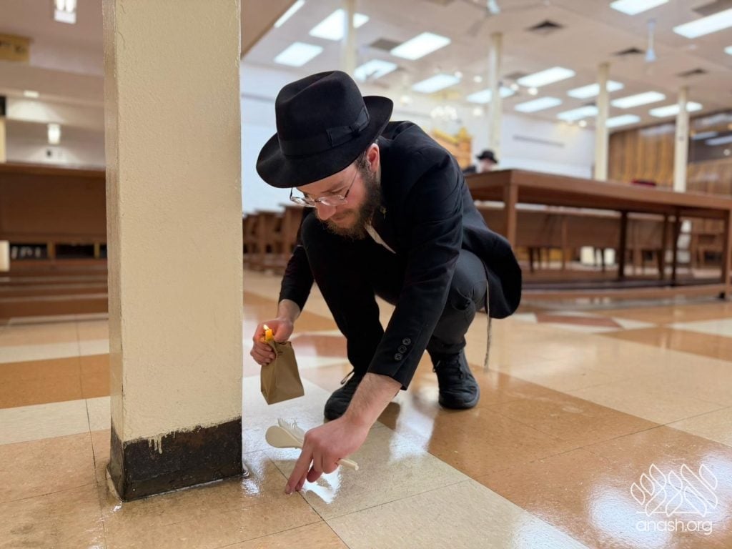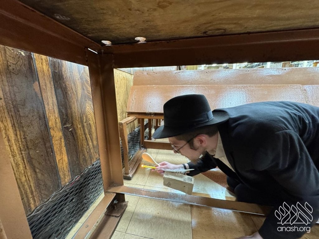 As Yidden around the world performed bedikas chometz, a group of bochurim searched the main shul at 770 for any morsel of chometz that might have been overlooked.