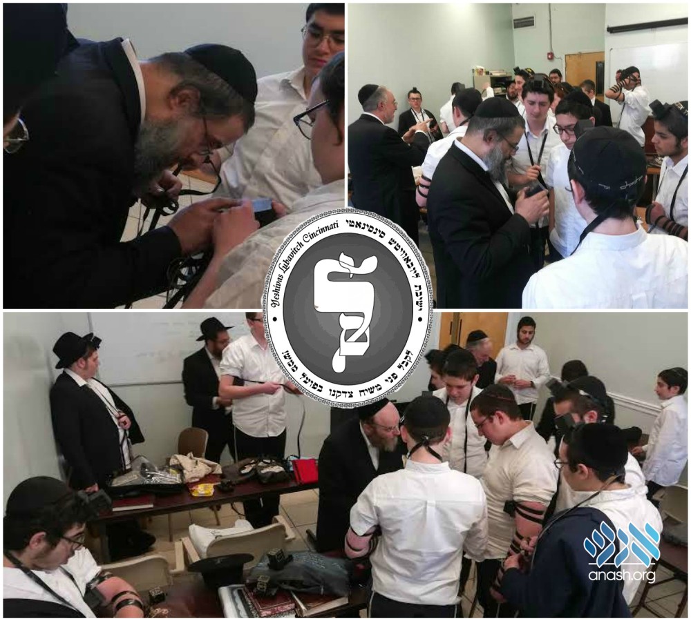 Yeshivas Lubavitch Cincinnati, under the leadership of Rabbi Gershon Avtzon, was visited the the TAP (Tefillin Awareness Program) team who showed them how to correct important issues in their Tefillin.
