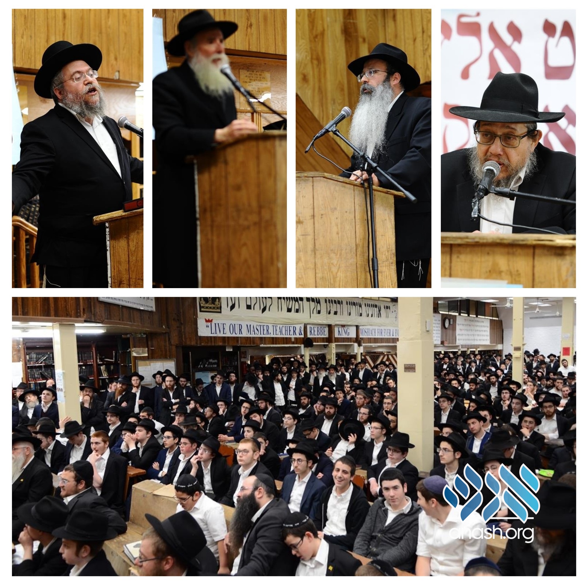 Bochurim and anash gathered Thursday night in 770, for kinus in honor of chof ches nissan. The Kinus was addressed by Rabbi Yosef. Y. Braun, Rabbi Sholom Charitonov, Rabbi Shlomo Cunin, and Rabbi Reuven Wolf.
