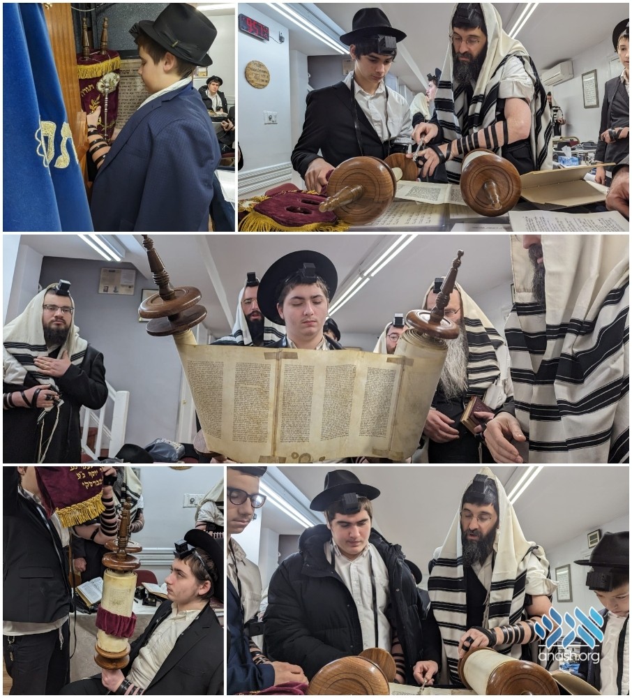 Bochurim from HaMesivta yeshiva in Canarsie got a chance to read from a Sefer Torah that was used by the Mitteler Rebbe in honor of Tes and Yud Kislev.
