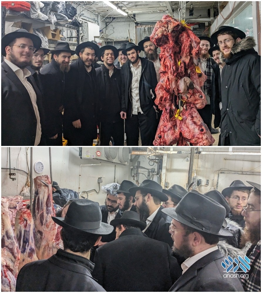 A group learning Hilchos Melichah at 770’s Semicha program were led through the melichah process for cattle. The group was guided by Rabbi Shmuly Tzfasman and arranged by meishiv Rabbi Yaakov Gurwitz.