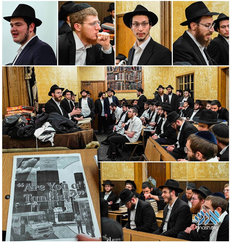 The Sunday night meeting was held to encourage all 770 bochurim to get involved and help arrange the parade in the coming weeks, as well as to sign up to drive a tank during the actual parade.