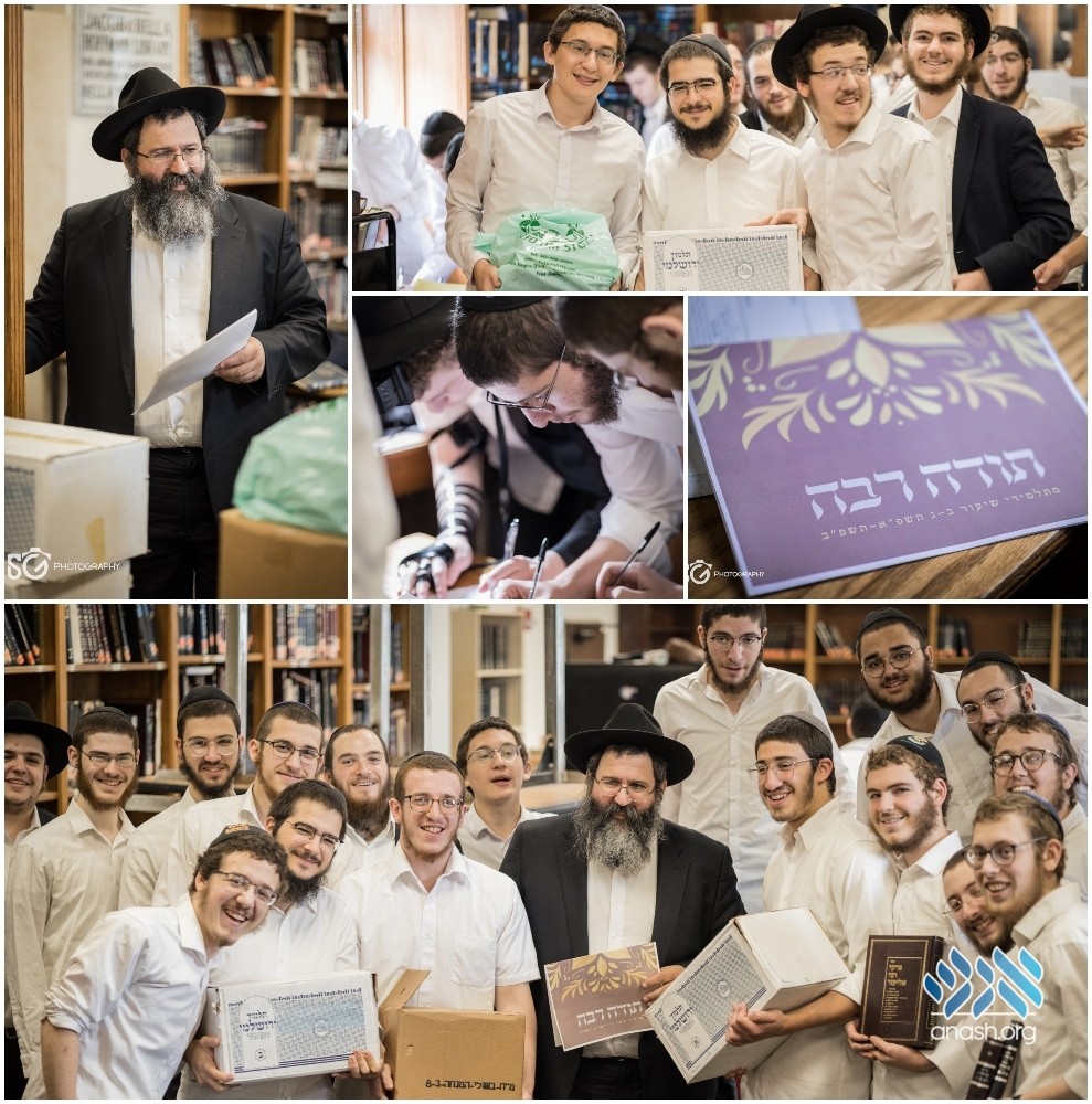 The bochurim also signed a joint letter thanking Rabbi Wilhelm, which they presented to him with the seforim.
