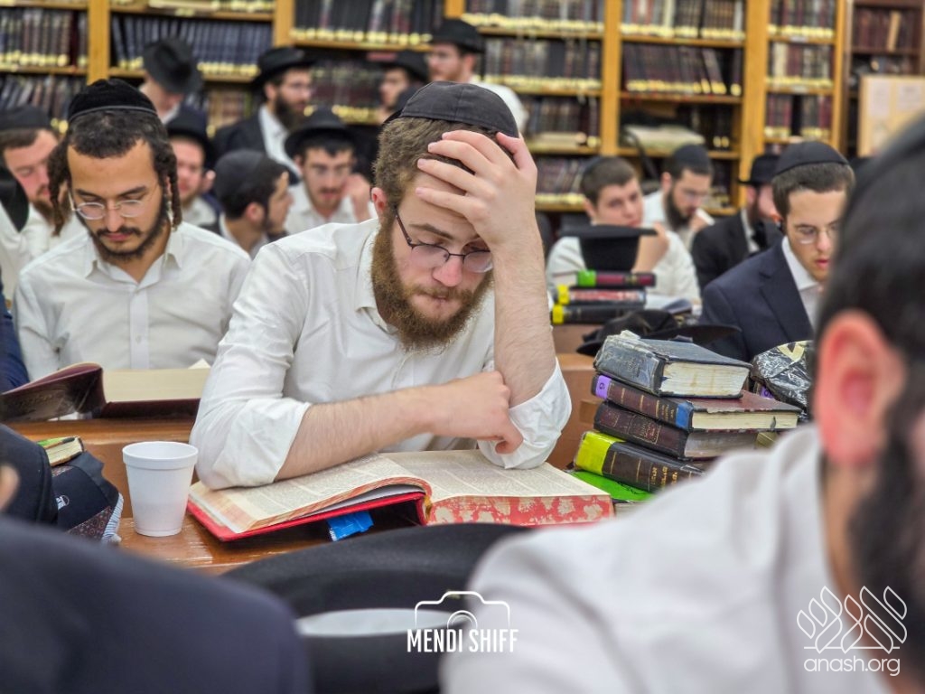 On Thursday night, Rabbi Shmulik Shur, Mashpia in Oholei Torah, led a powerful farbrengen that stretched late into the night, urging bochurim to seize every moment of Tishrei by the Rebbe.