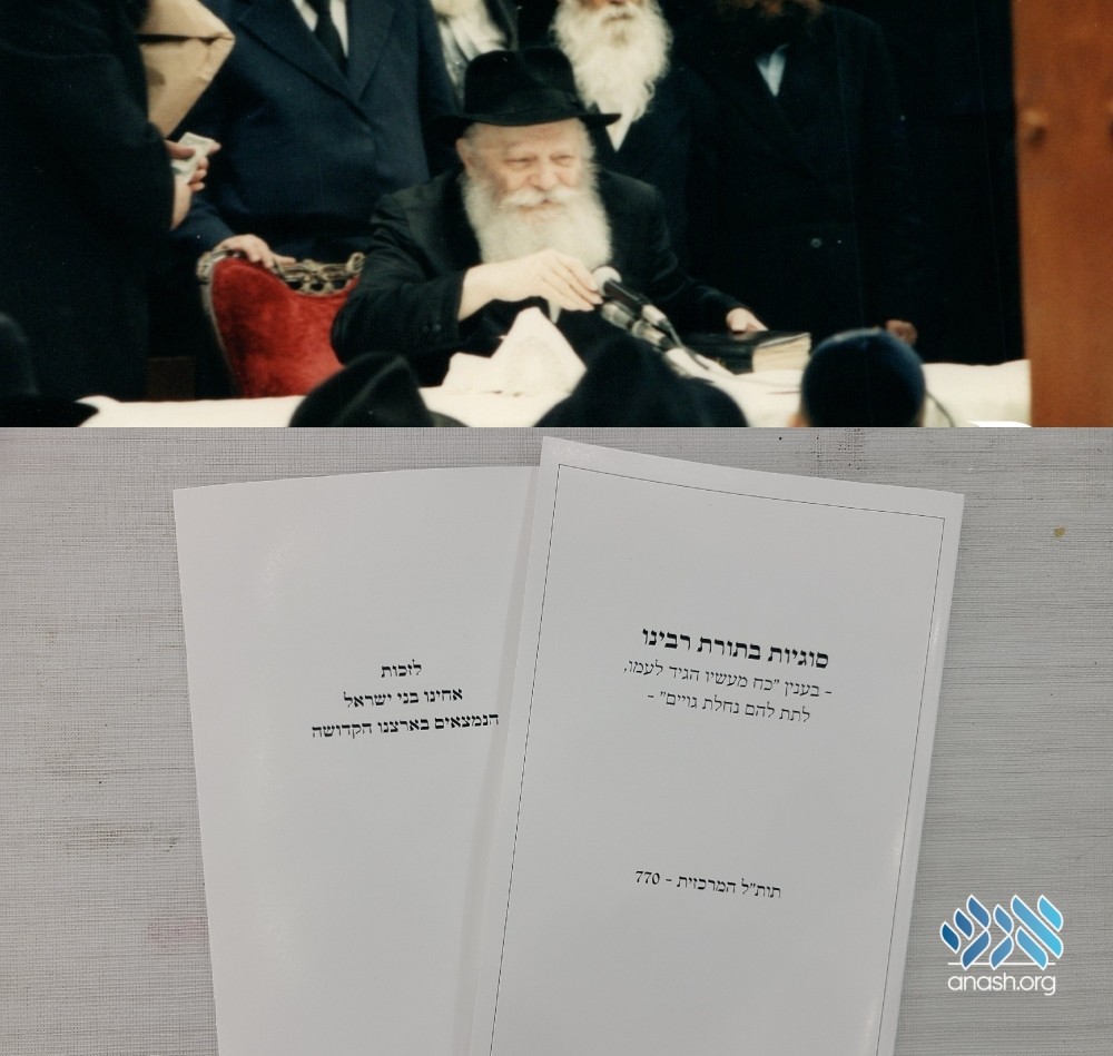 A Kovetz was put together in collaboration with Mashpiim in the Yeshiva with some of the Rebbe’s Sichos and Maamorim on this subject, and is available for purchase in 770.