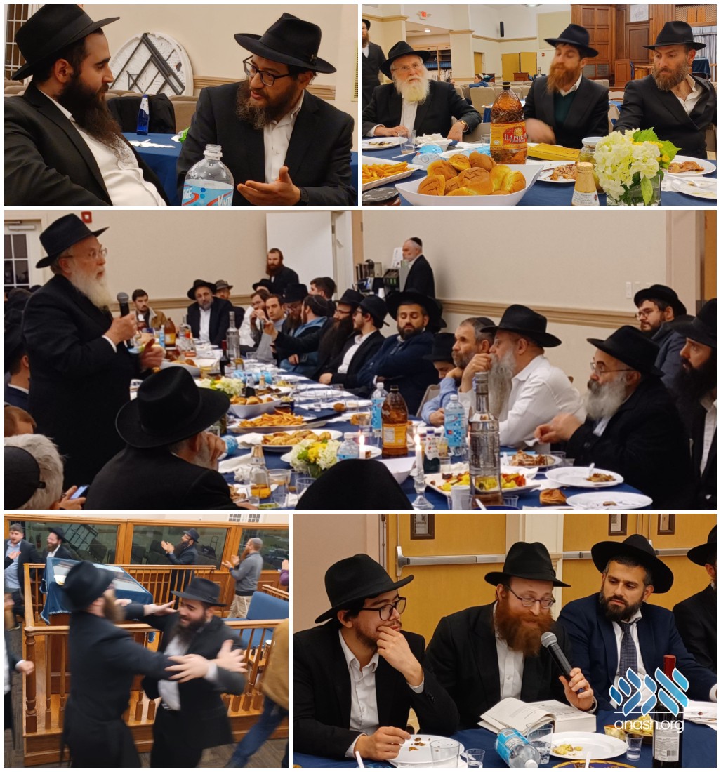 The farbrengen took place at Chabad of Newton, which is led by shluchim Rabbi Chaim Prus and Rabbi Sholom Ber Prus. A full fleishig catered meal was masterfully prepared by Jonathan Shapiro, who arranged a proper seudah along with farbeisin, mashke and deserts.
