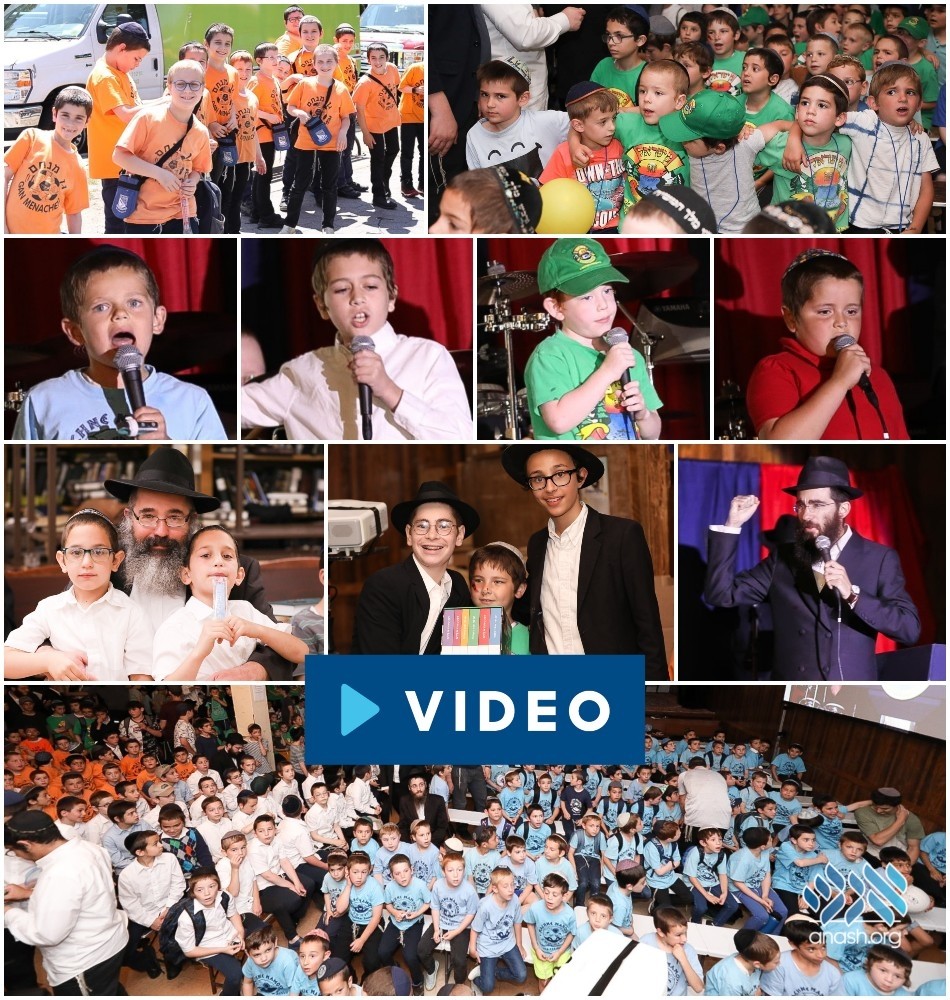 Boys from day camps in Crown Heights joined a lively rally in 770, celebrating Chag Hageulah Yud Beis Tammuz, with children in overnight camps joining via live stream.