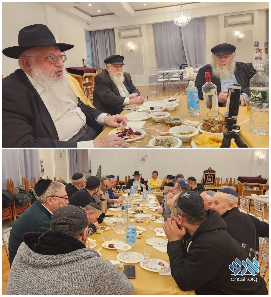 The farbrengen was sponsored in memory of Rabbi Dovid B. Hollander who’s yartzeit is also chof daled Teves.