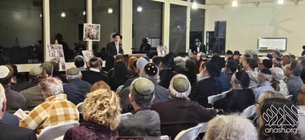 A large crowd gathered for a heartfelt shloshim memorial hosted by Chabad of Bakersfield, California, led by Shliach Rabbi Shmuly Schlanger, in memory of his brother, Rabbi Eli Schlanger HYD, who was tragically murdered 30 days ago in the Sydney terror attack.