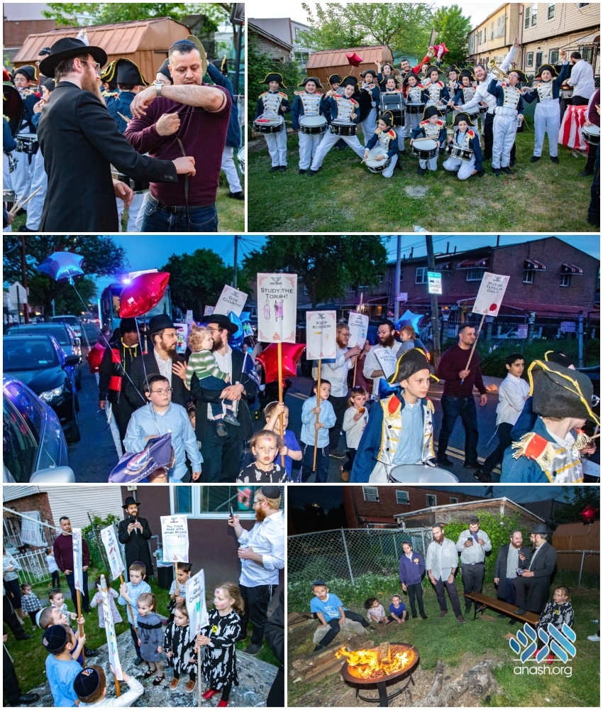 The Brownsville Anash community celebrated the joyous day of Lag B’omer with a marching band parade, BBQ, bounce house, bonfire, face paint, and balloons.