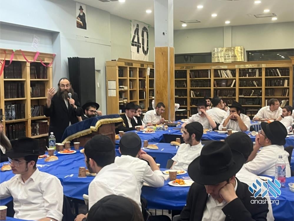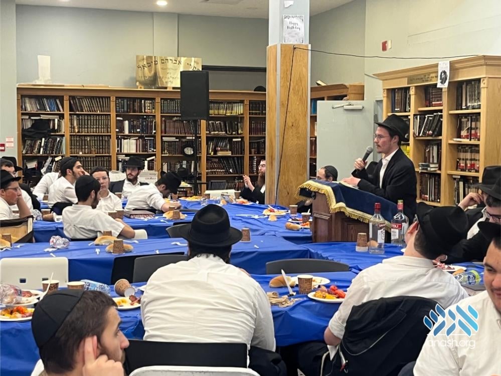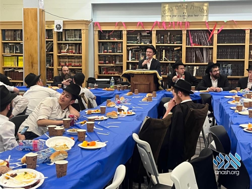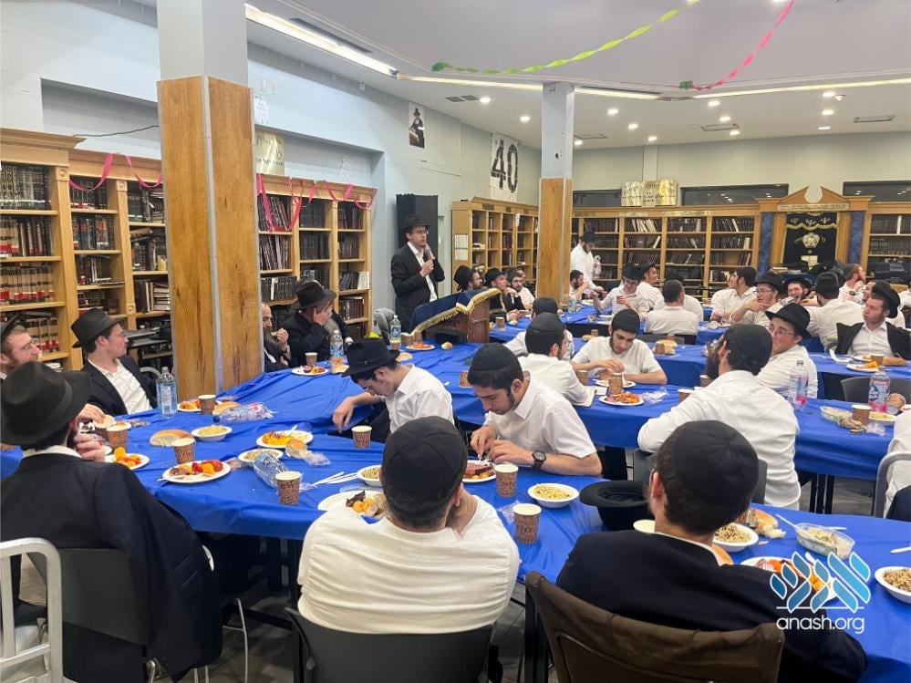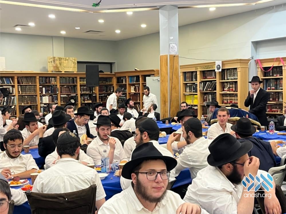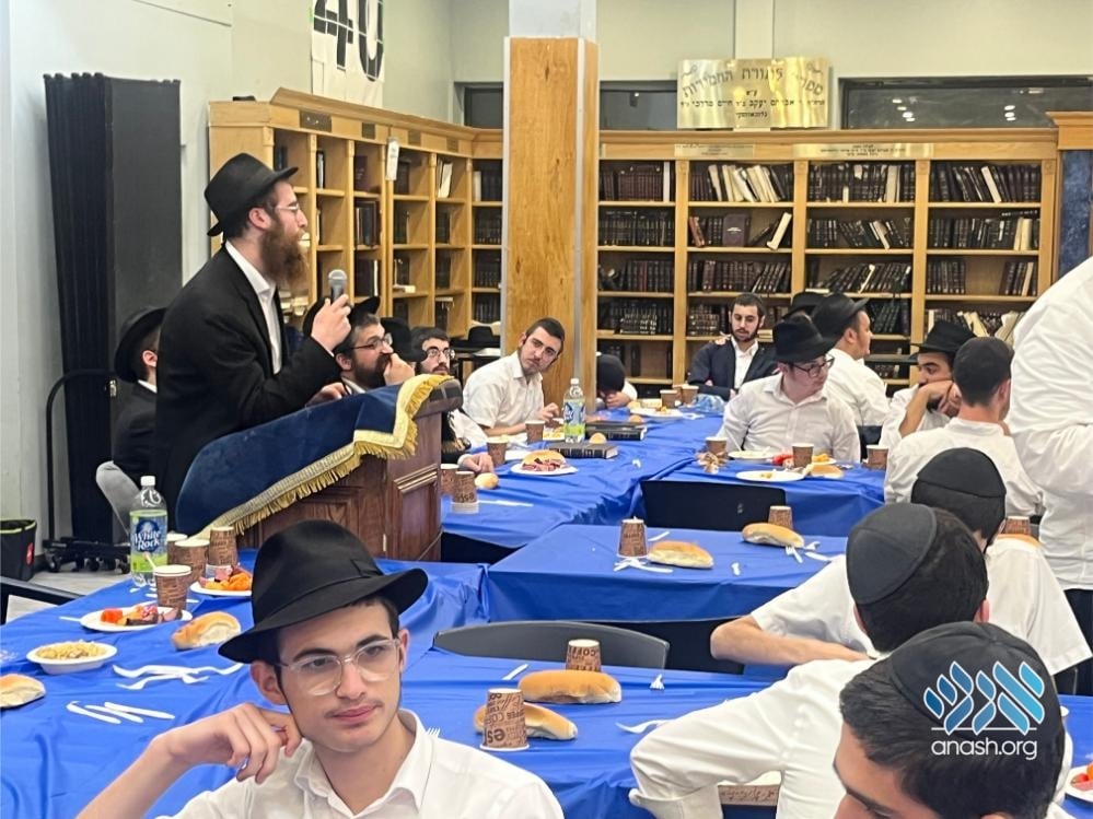 The evening also served as a warm welcome for the new shluchim who have joined the yeshivah this year: Yechezkel Chanoch Hakohen Langzam, Moshe Yehuda Melul, Menachem Mendel HaLevi Fischer, Yosef Peretz Cunin, Menachem Mendel Katzenelbogen, and Aryeh Leib Reichman.