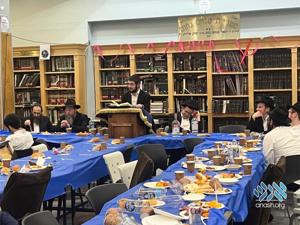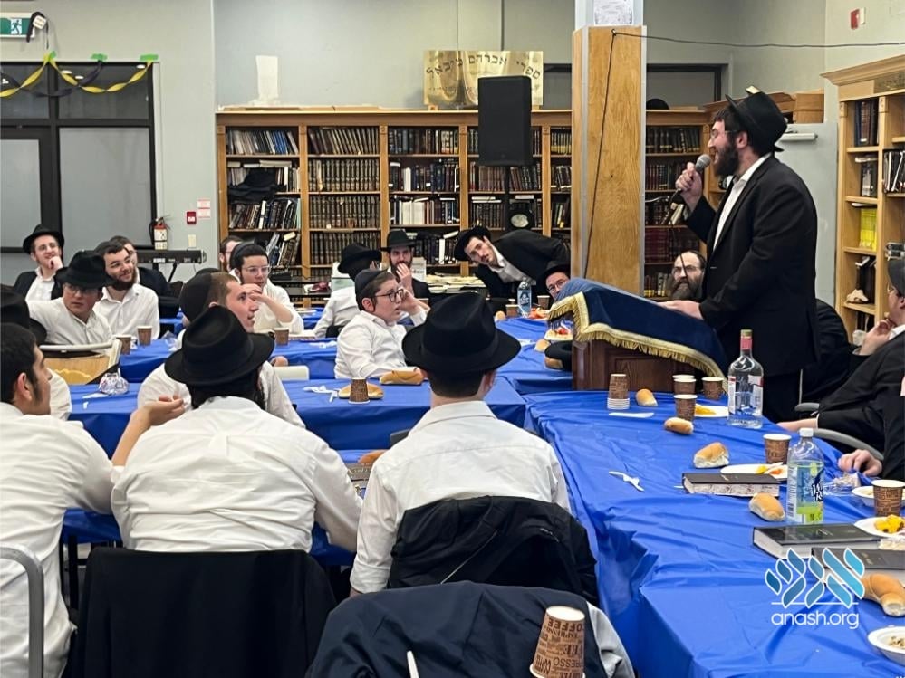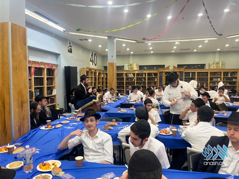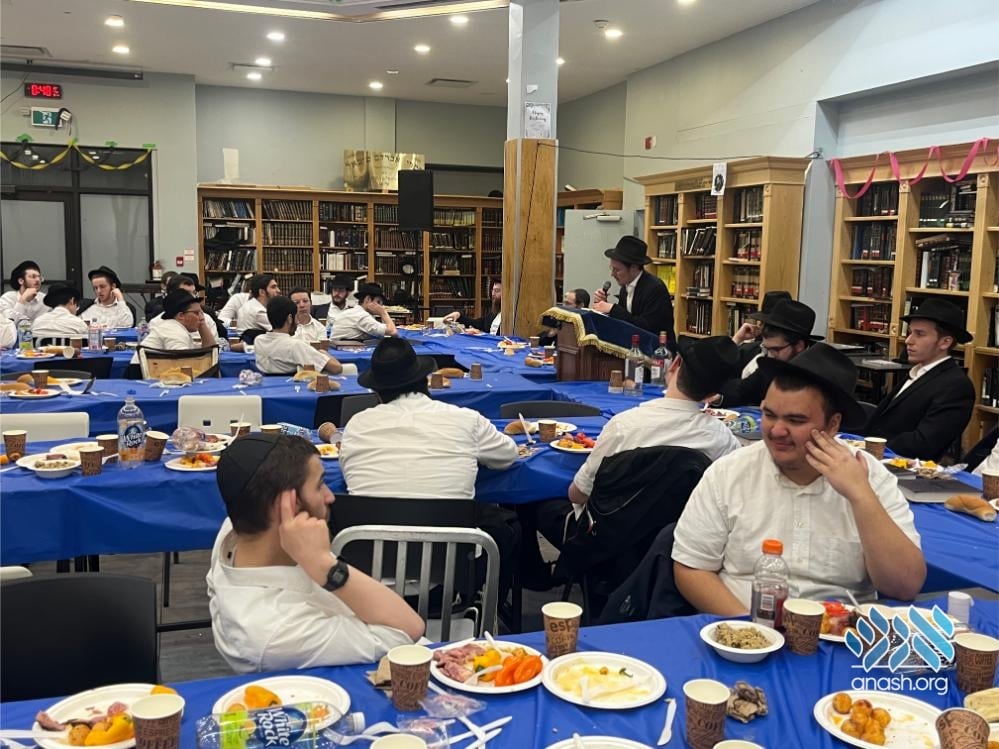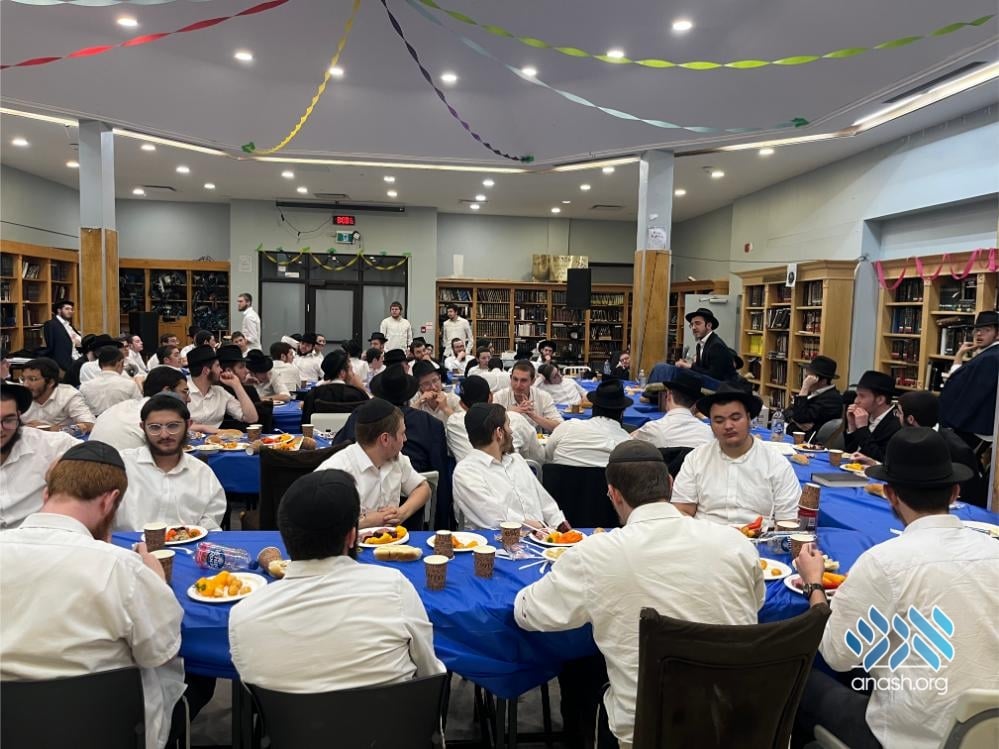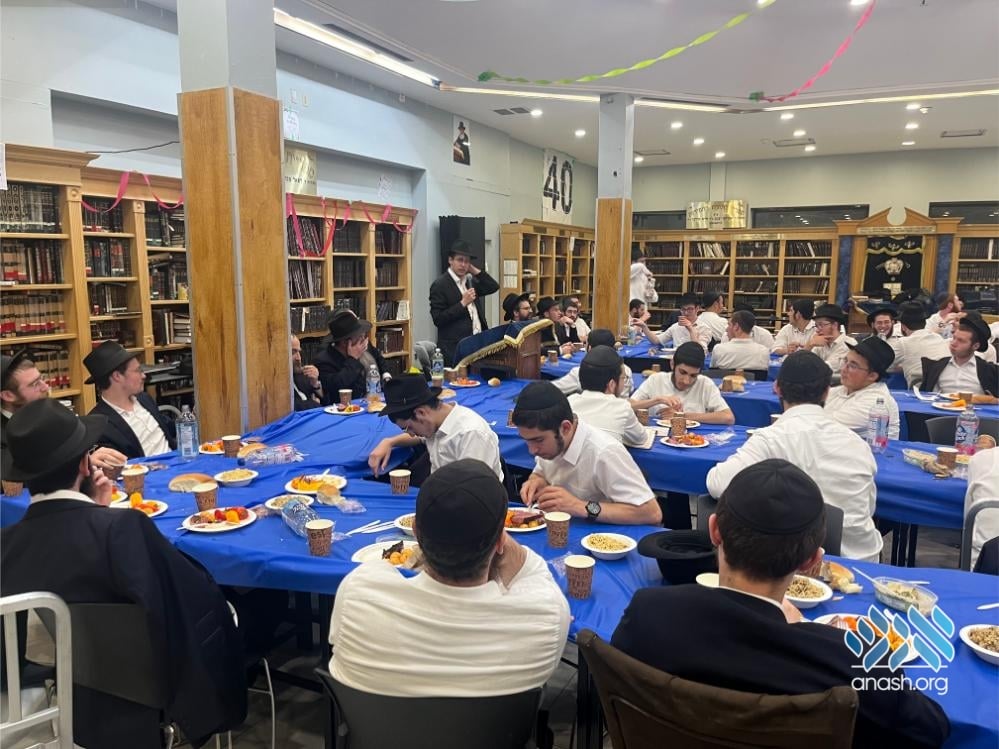 The evening also served as a warm welcome for the new shluchim who have joined the yeshivah this year: Yechezkel Chanoch Hakohen Langzam, Moshe Yehuda Melul, Menachem Mendel HaLevi Fischer, Yosef Peretz Cunin, Menachem Mendel Katzenelbogen, and Aryeh Leib Reichman.