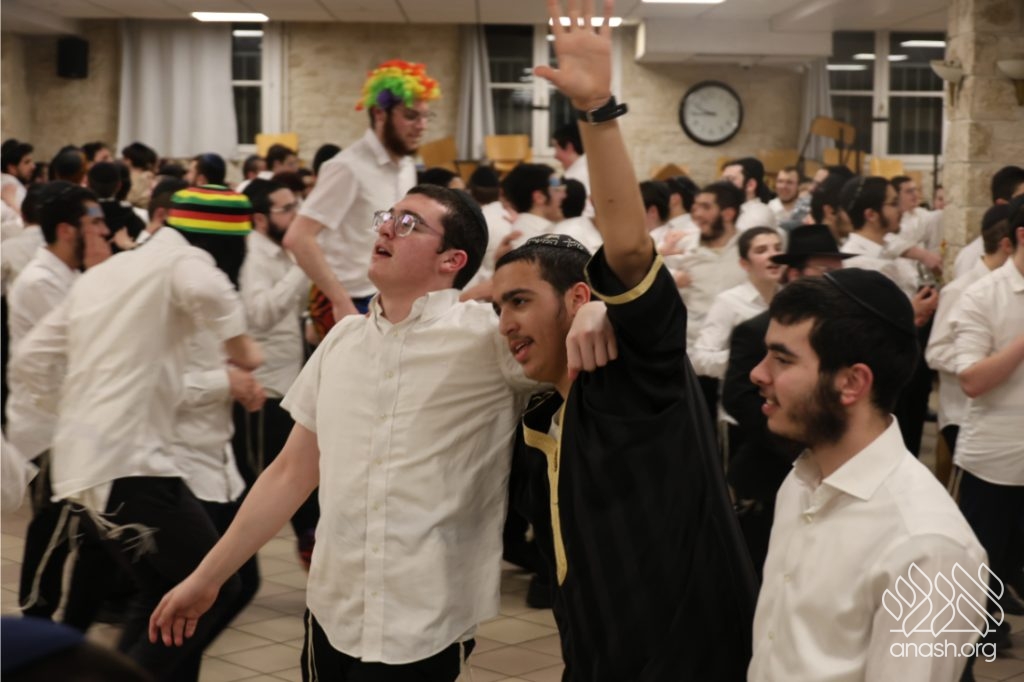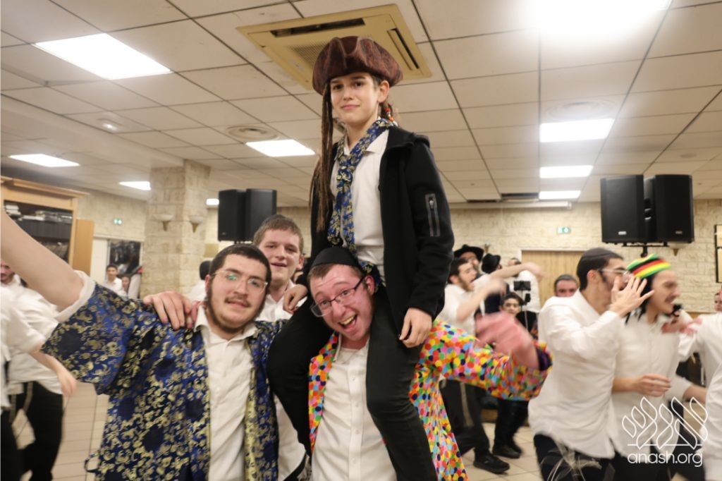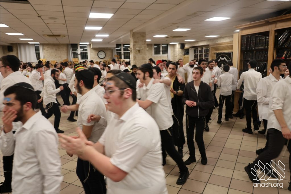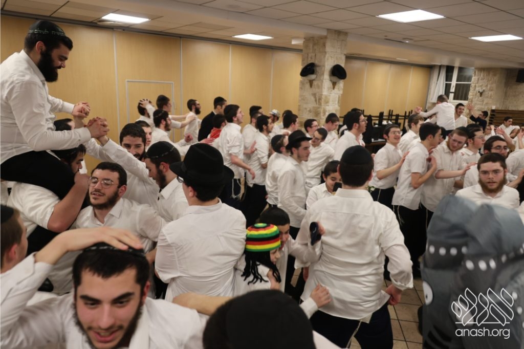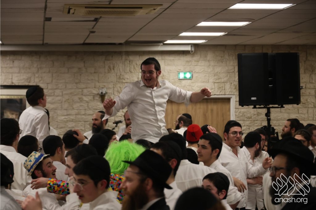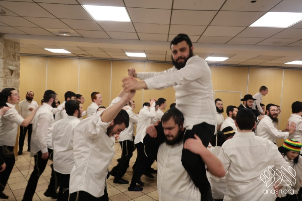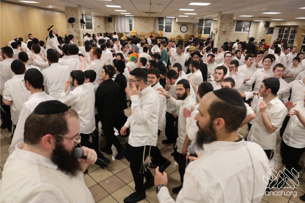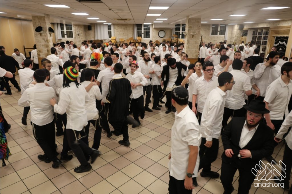 Bochurim at the Brunoy yeshiva burst into joyous dancing, as they were joined by singers Shalom Dijan and Mendy Gabay, accompanied by Asher Tuito and his orchestra, celebrating the simcha for the month of Adar.
