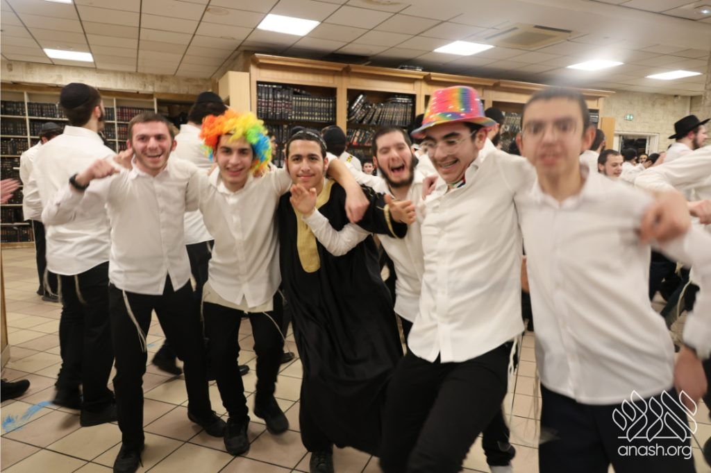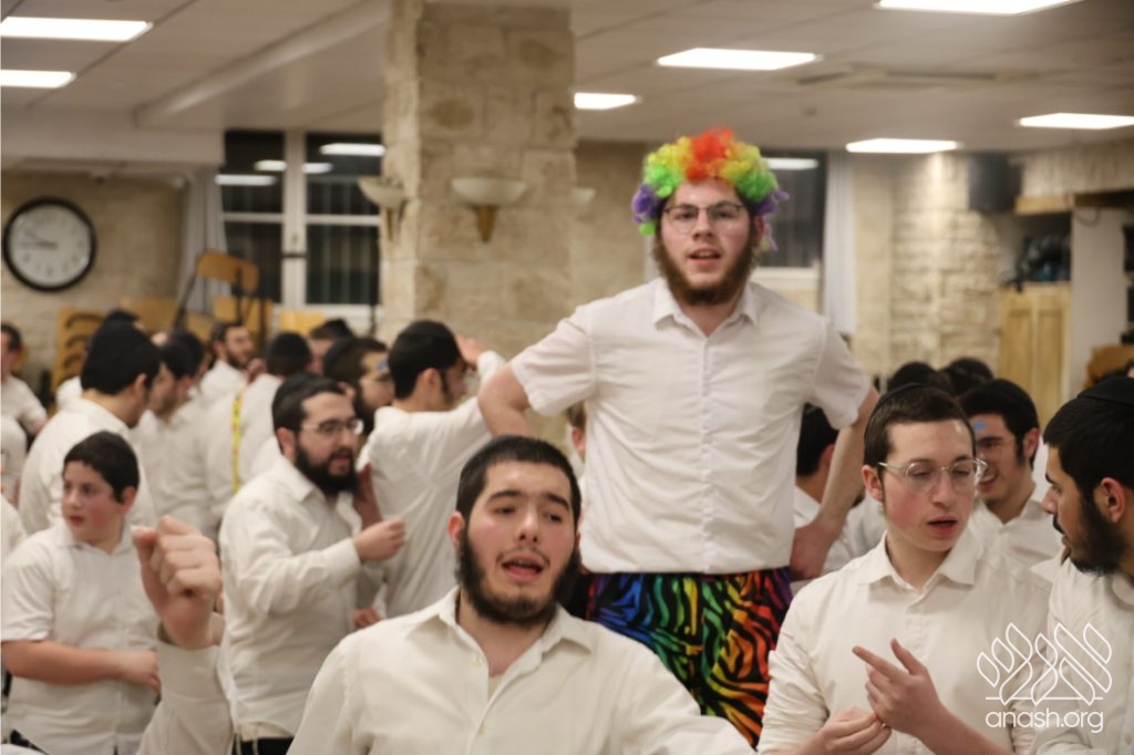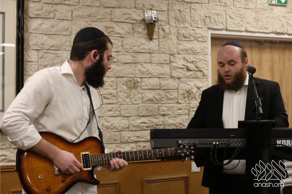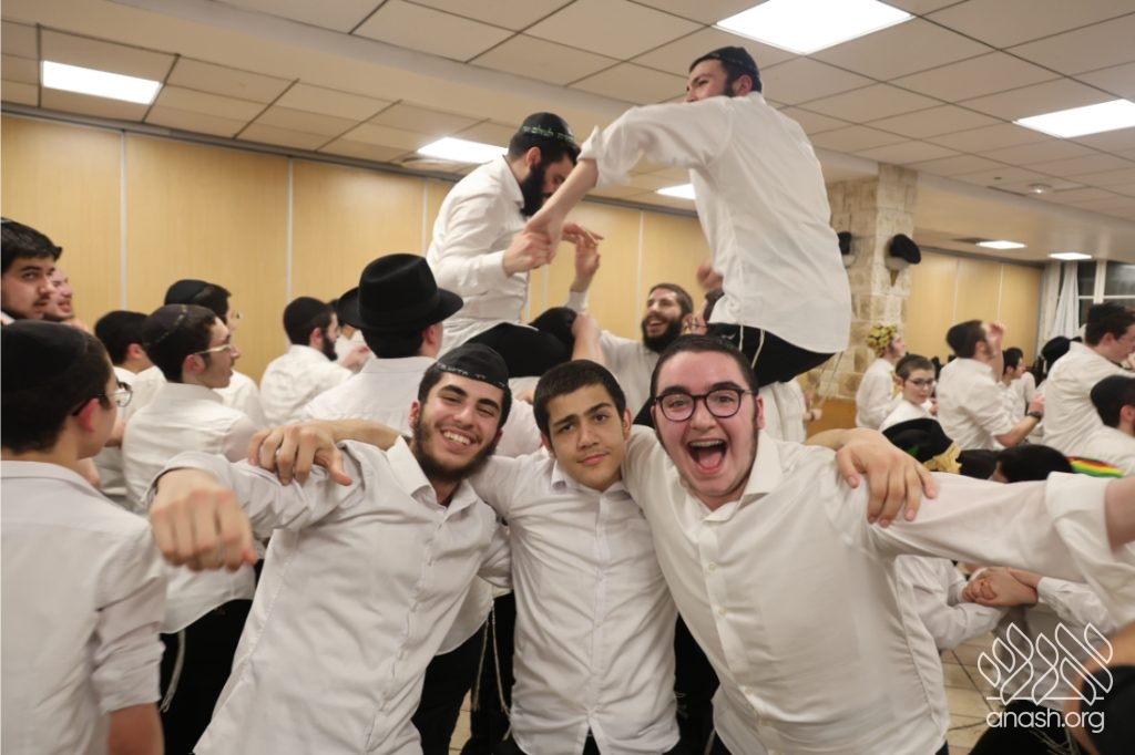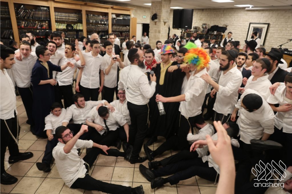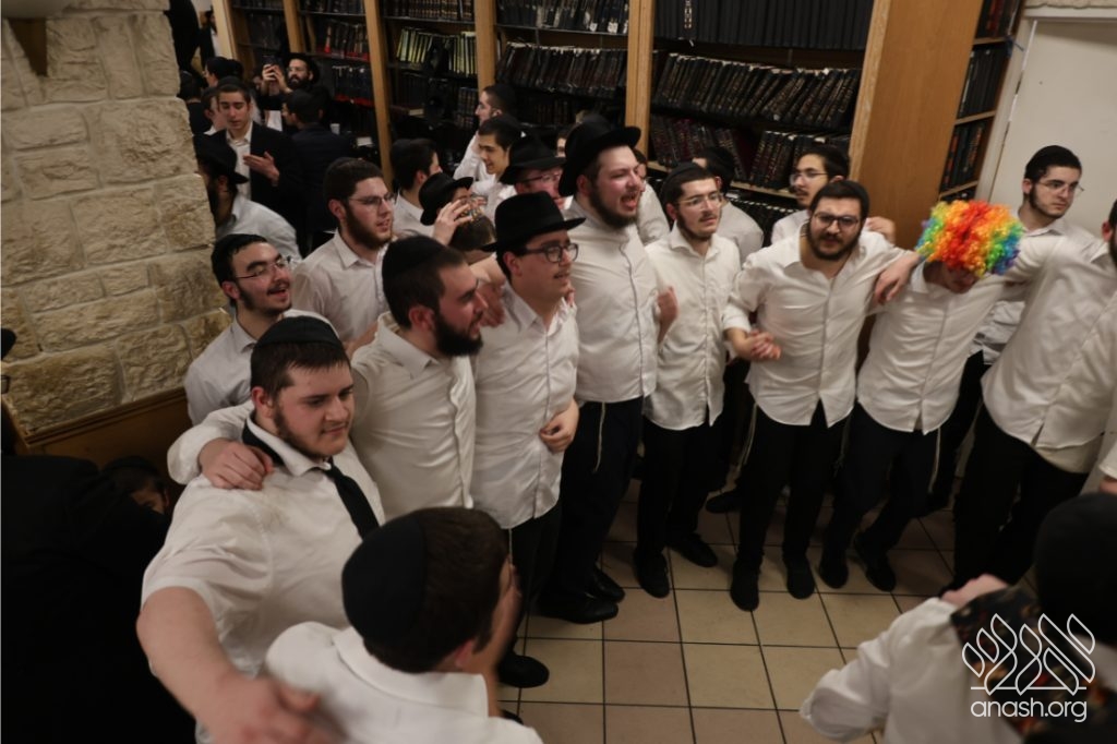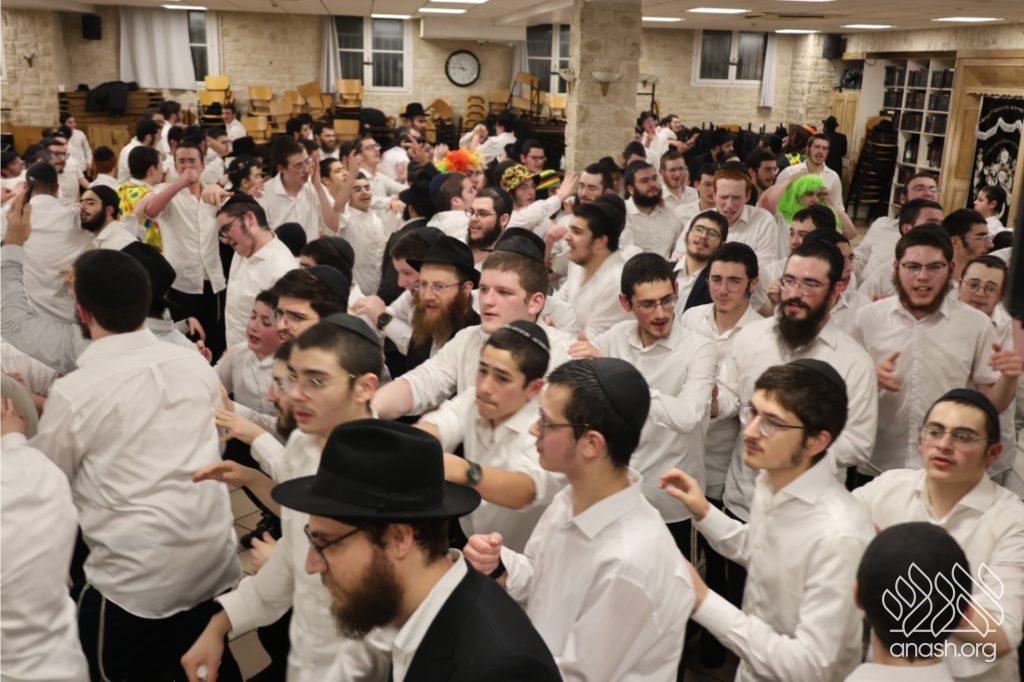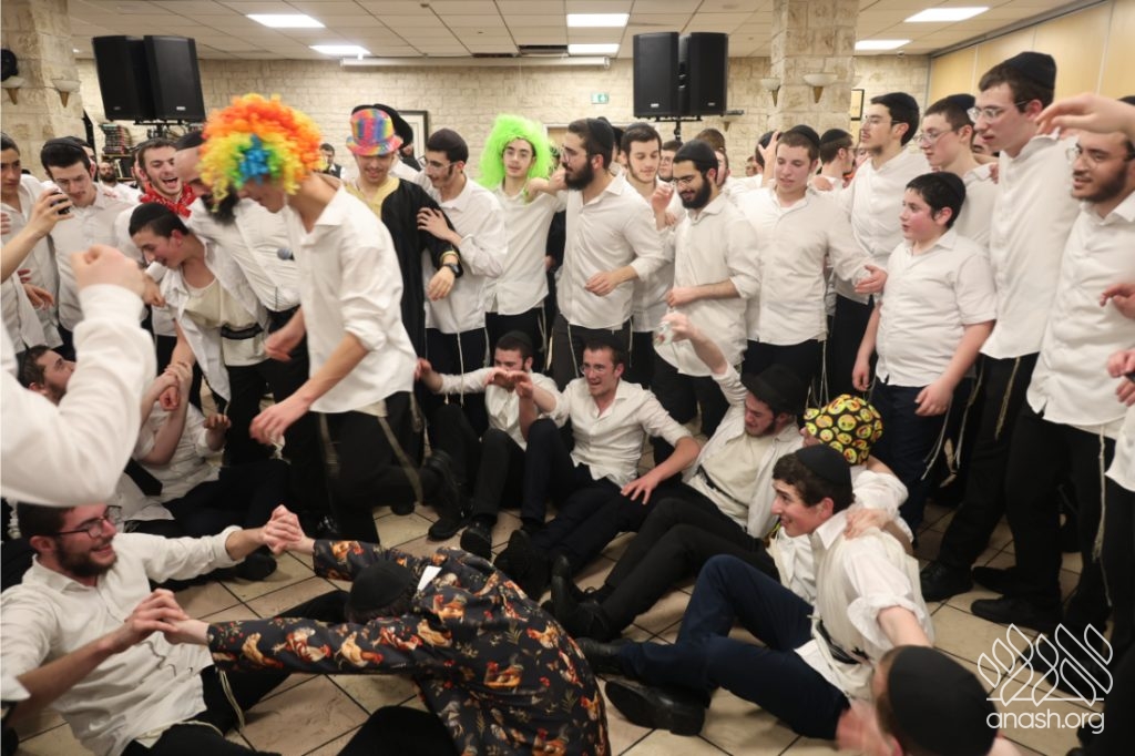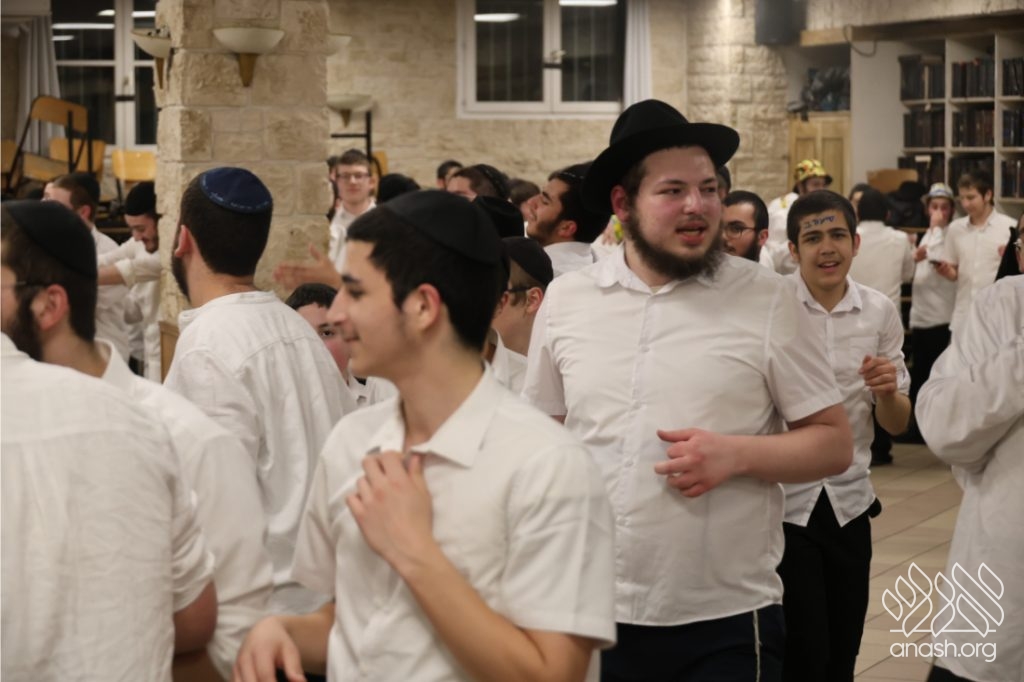 Bochurim at the Brunoy yeshiva burst into joyous dancing, as they were joined by singers Shalom Dijan and Mendy Gabay, accompanied by Asher Tuito and his orchestra, celebrating the simcha for the month of Adar.
