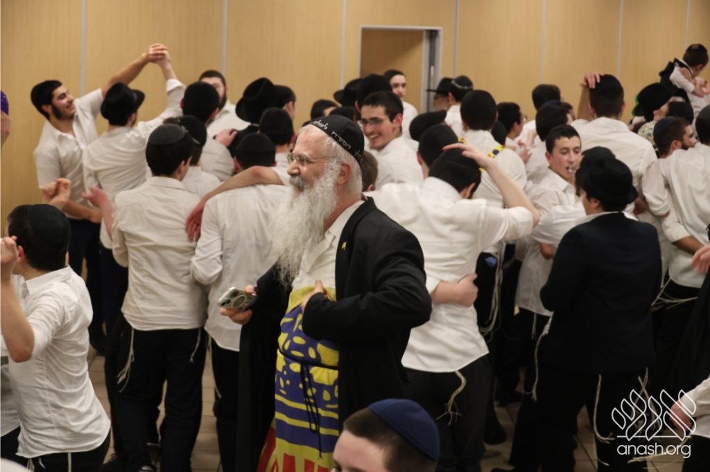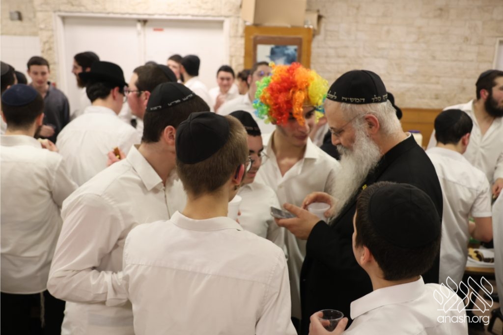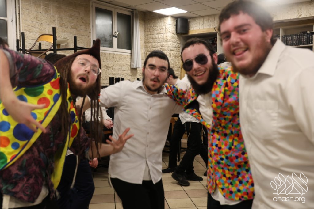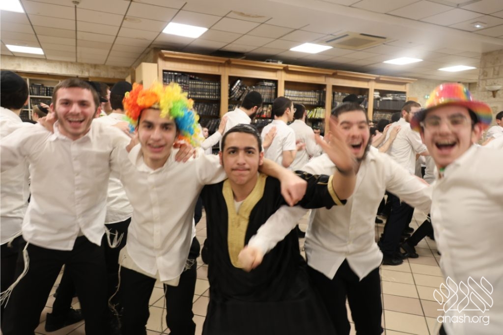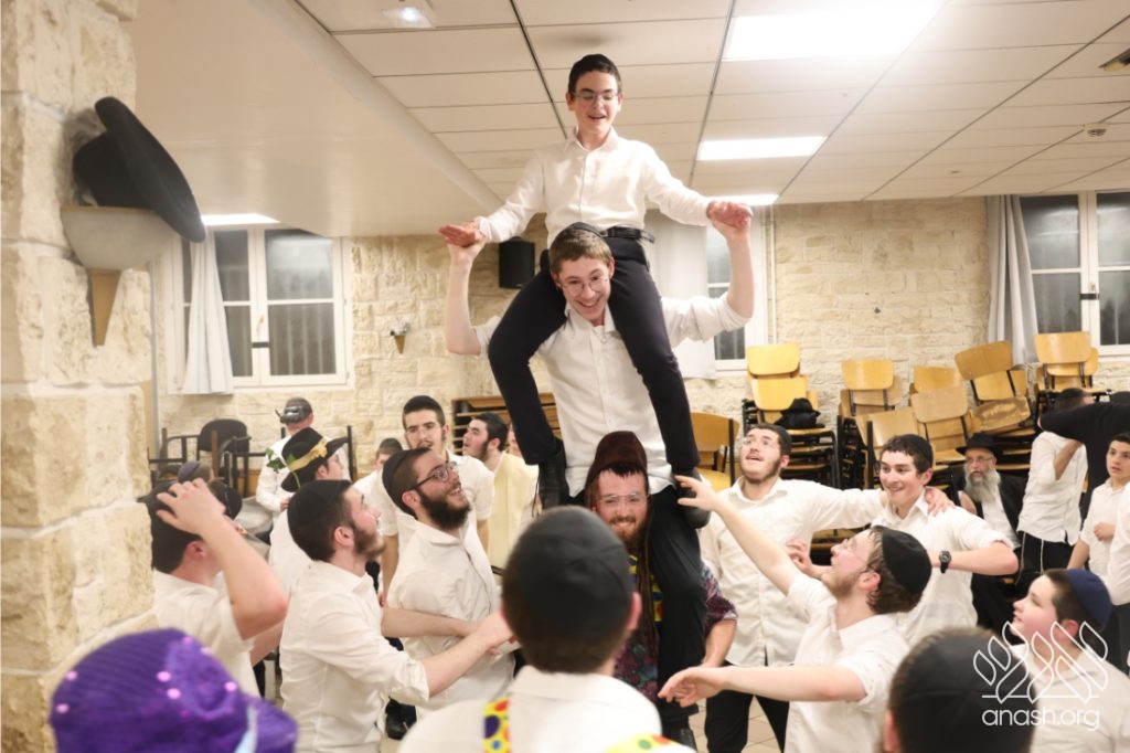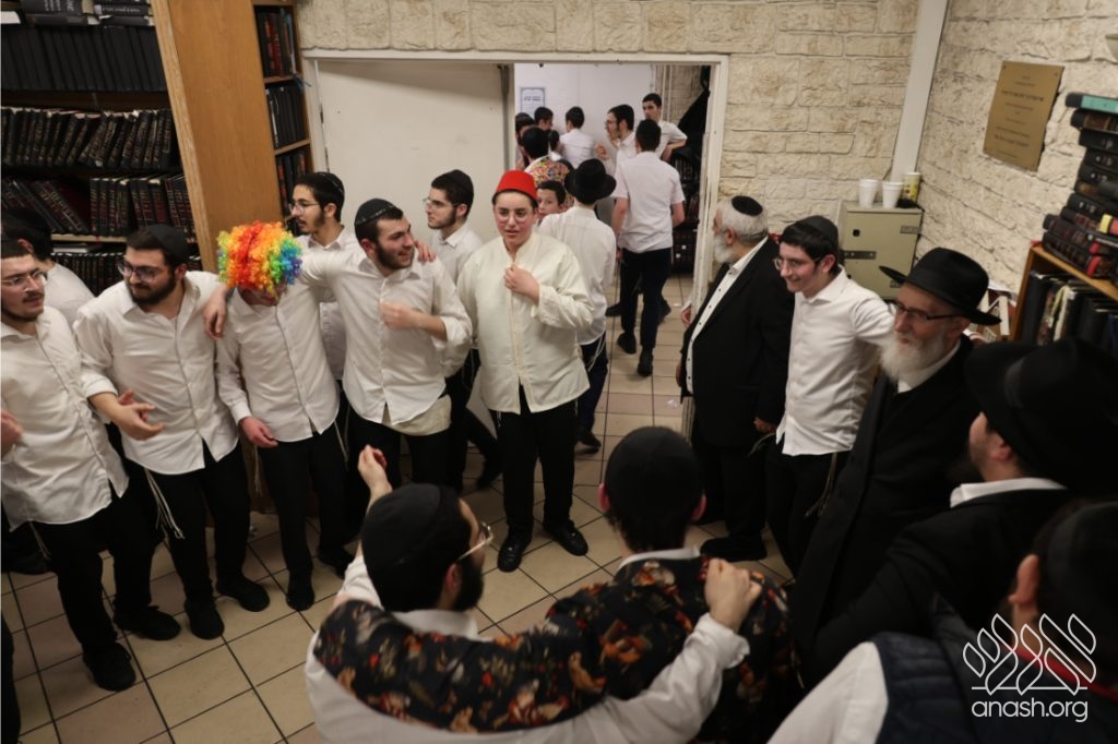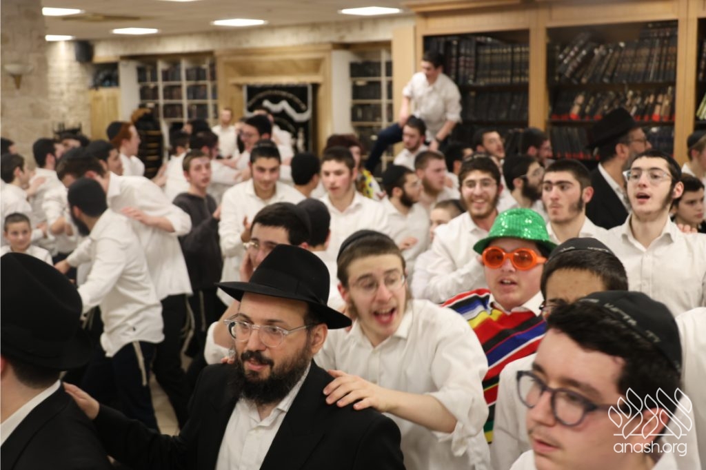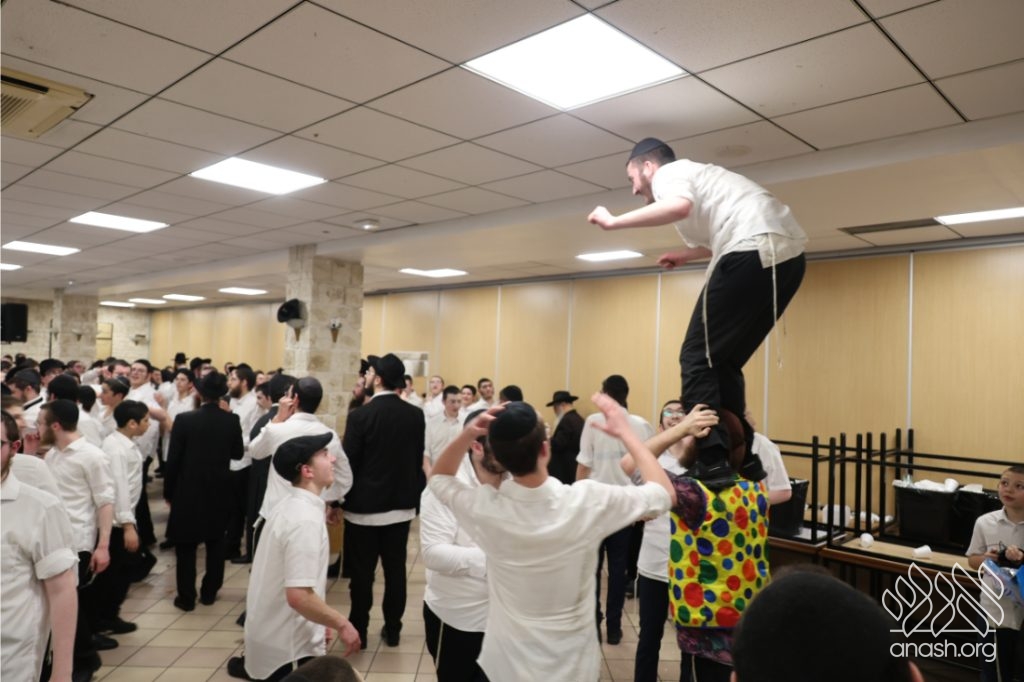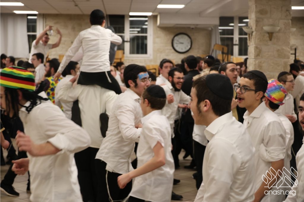 Bochurim at the Brunoy yeshiva burst into joyous dancing, as they were joined by singers Shalom Dijan and Mendy Gabay, accompanied by Asher Tuito and his orchestra, celebrating the simcha for the month of Adar.