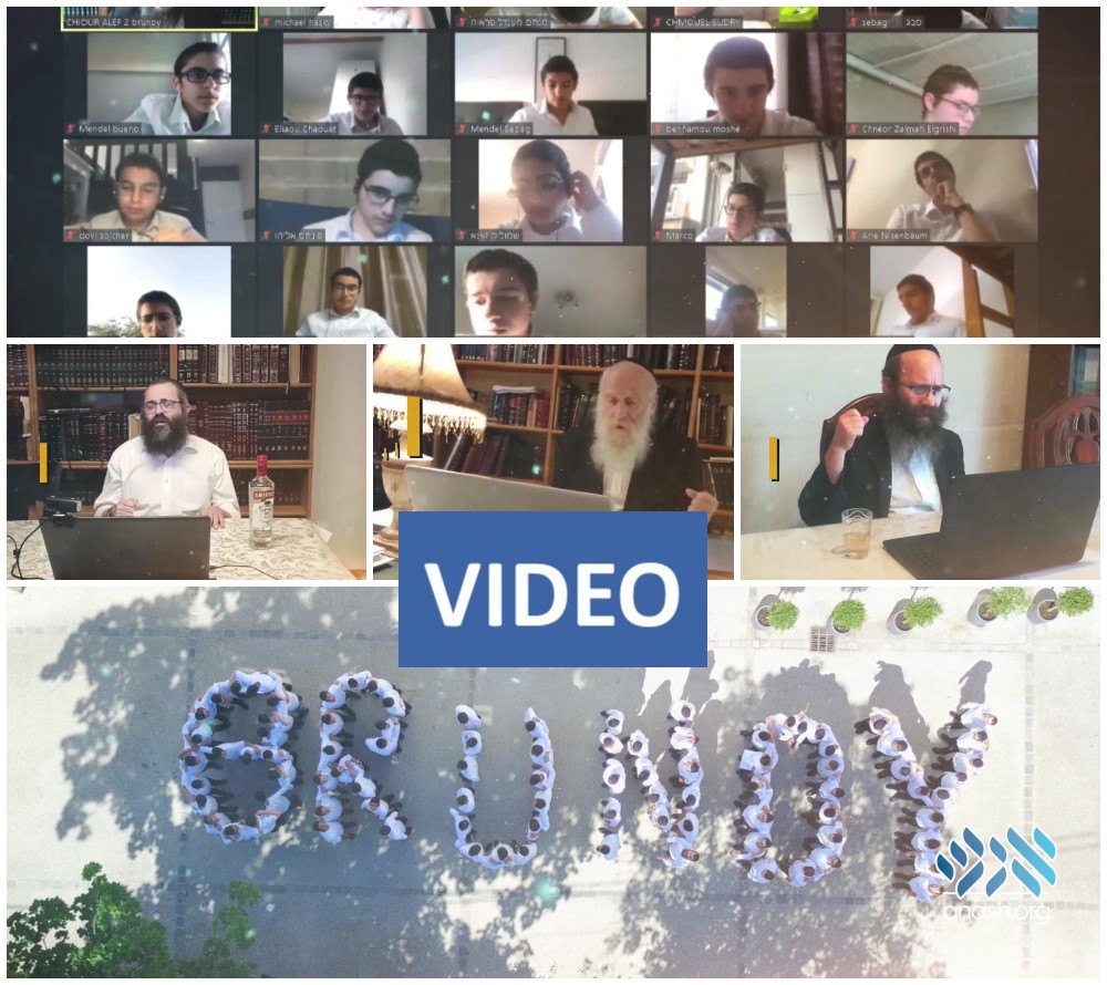 Watch: The teachers, mashpi’im and staff of the famed Brunoy yeshiva did not allow the closing of the physical yeshiva location to stop the learning, shiurim and farbengens.