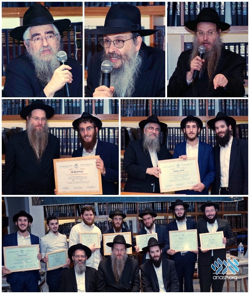 The Smicha graduates are Hatomim Motty Moskovitz, Hatomim Tuvia Shmukler and Hatomim Alexander Posternak. The Shabbos Program graduates are: Hatomim Mendy Chocron, Aharon Chab, Eitan Benoliel, Arie Leib Farkash, Dan Kordon, Reb Zasha Silberstein and Reb Chaim Dobry.