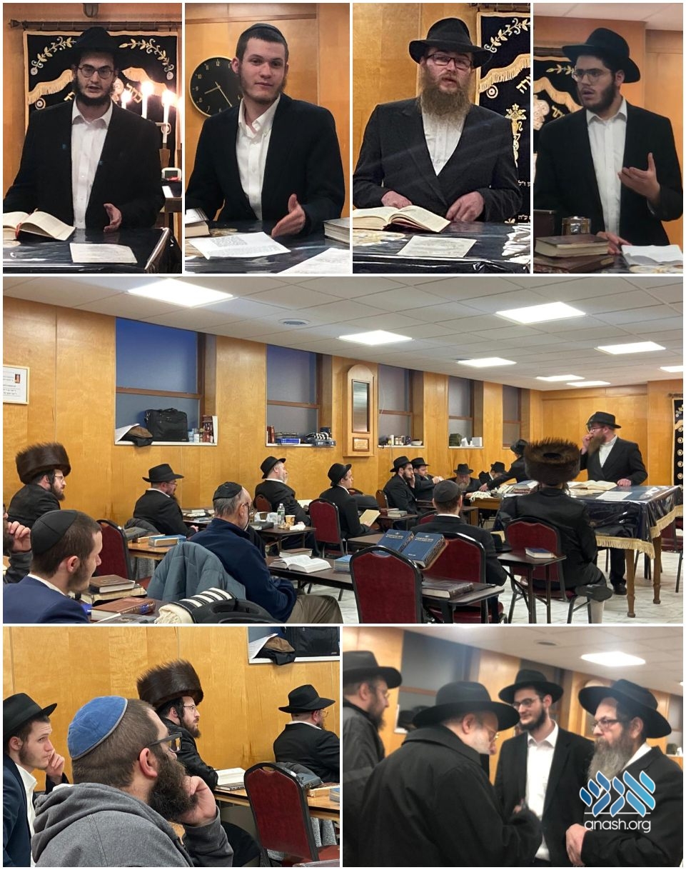 Many Bochurim came together in the spirit of Pesach to speak and inspire a large crowd of listeners, fulfilling the Rebbes directive to increase in the Study of Torah specifically on Pesach, when one should “Pe” “Sach”, share words of Torah.