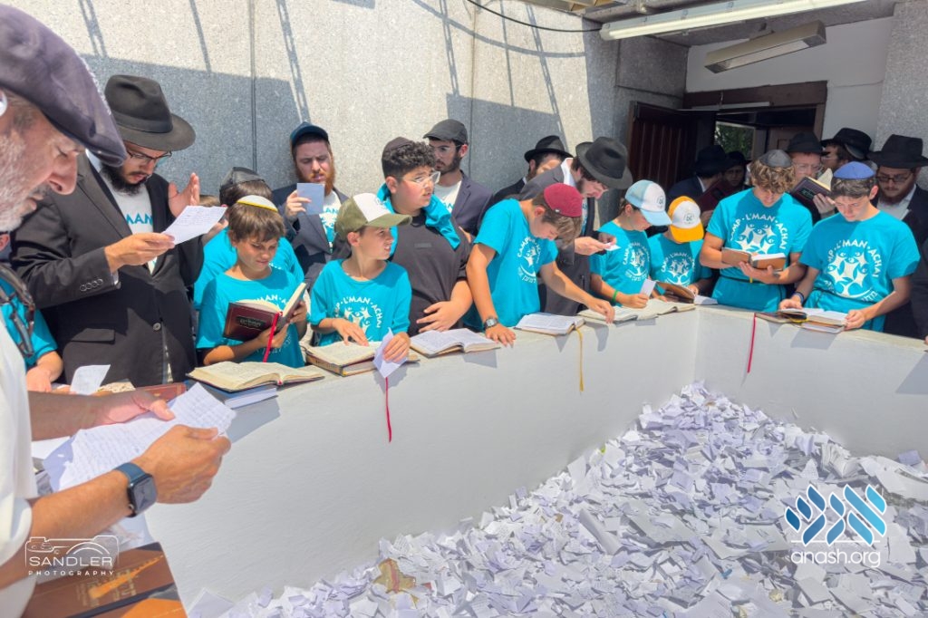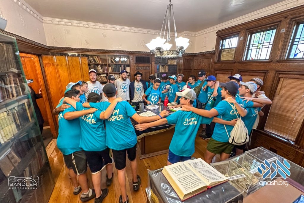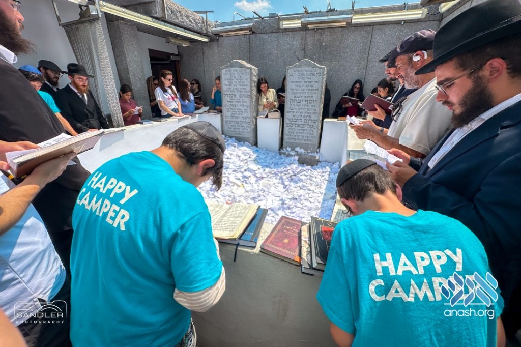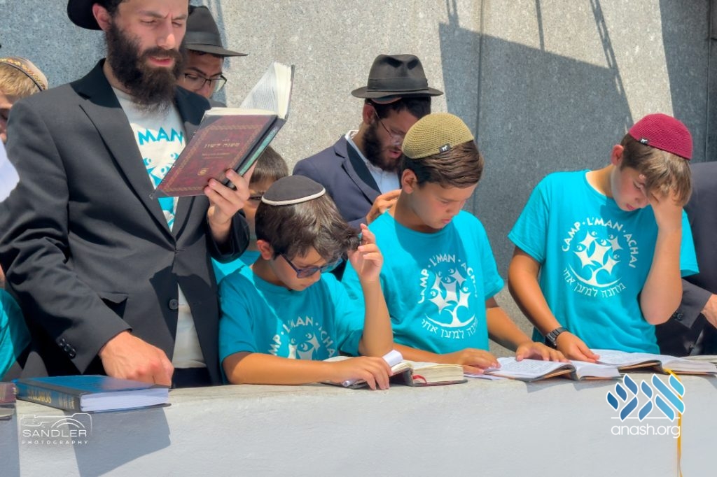 The trip began at the Ohel, where the boys had prepared panim the night before during learning classes. Greeted by Rabbi Yossi Paltiel who spoke to the campers, they then entered in small groups to daven — for many, it was their first time, and an unforgettable spiritual moment.