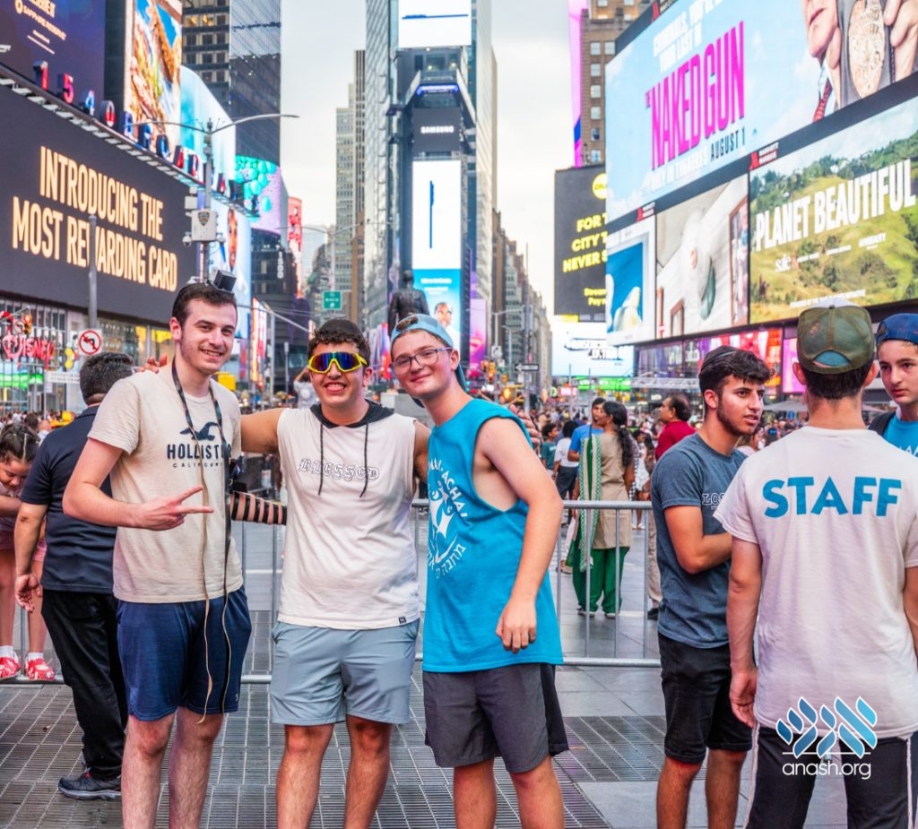 The older division stayed an extra day, visiting the Museum of Jewish Heritage to learn about the Holocaust, catching a Yankee Stadium game, and bringing Jewish joy to Times Square. When faced with anti-Semitic remarks, they responded with song and positivity — blasting “I’m a Jew and I’m Proud” in a moment that went viral.