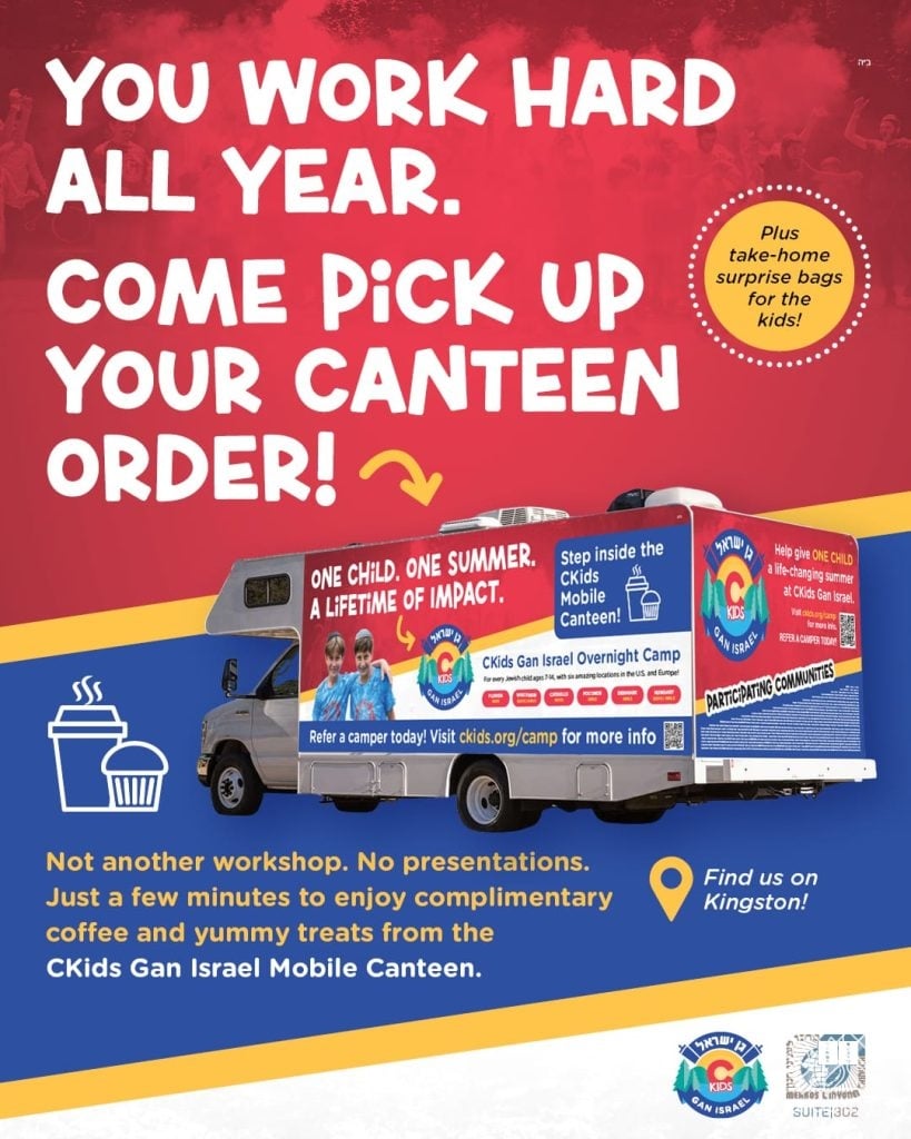 The Mobile Canteen is part of the broader CKids Gan Israel Overnight Camp Grant initiative, launched just a few weeks ago. The initiative provides a $1,000 grant to families enrolling their children in one of the CKids Gan Israel overnight camps, helping remove financial barriers and open the door for more children to experience a fully immersive Jewish summer.
