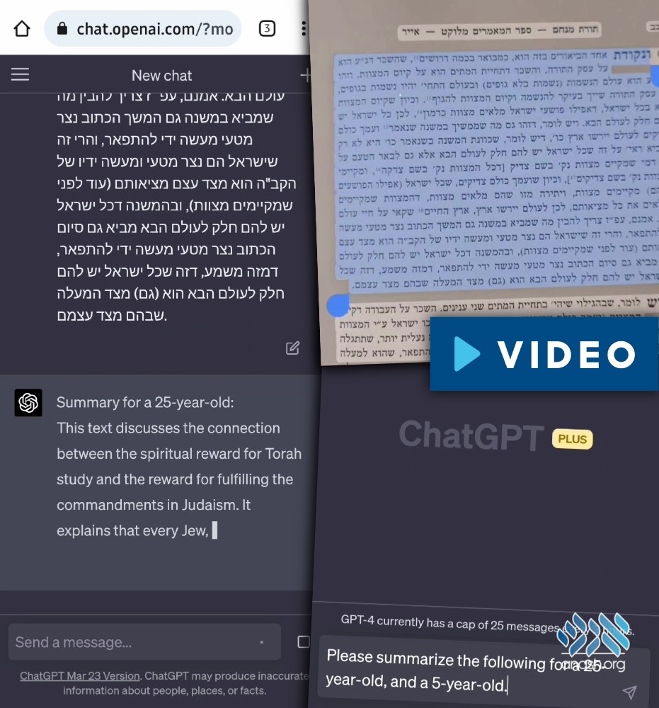 He copied the text of a se’if of a ma’amar from the Rebbe into ChapGPT and asked it to write a summary for a 25-year-old and a 5-year-old. Just a few seconds later, they were both ready.