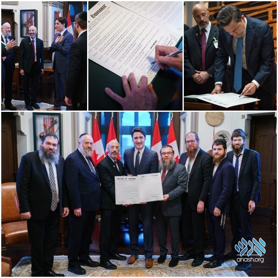 Canada’s PM Signs ‘Scroll of Honor’ for the Rebbe