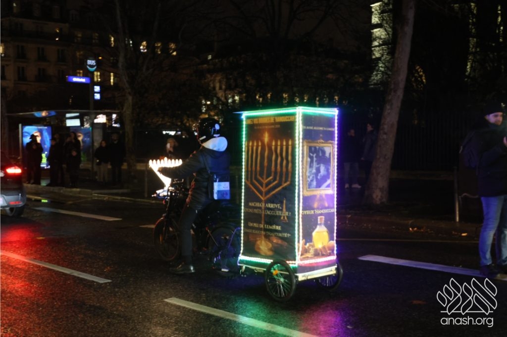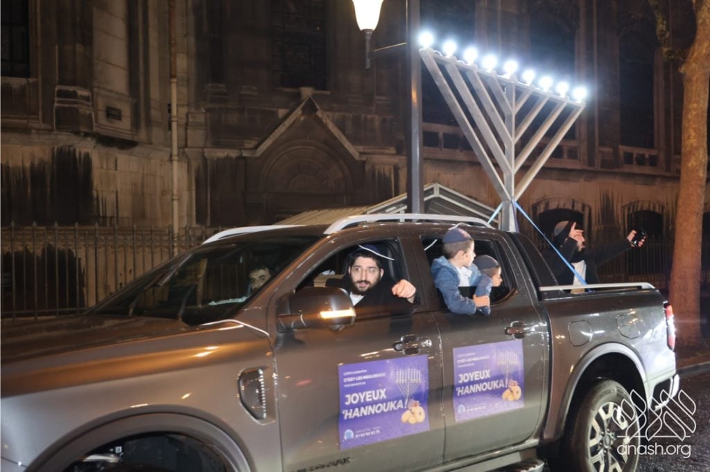 A large Car menorah parade brought the joy of Chanukah to the streets of Paris, France, as hundreds of Anash joined on bikes, cars, buses, and Mitzvah Tanks paraded down Boulevard de Sébastopol, concluding with a Menorah lighting at Châtelet Square.