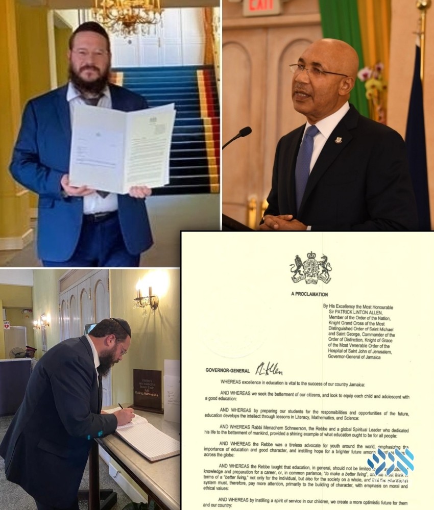 The Governor General Of Jamaica, Hon. Patrick Allen, declared Sunday, Yud Alef Nissan, to be Education and Sharing Day in Jamaica, making it the only country outside the US and Canada to issue such a proclamation.