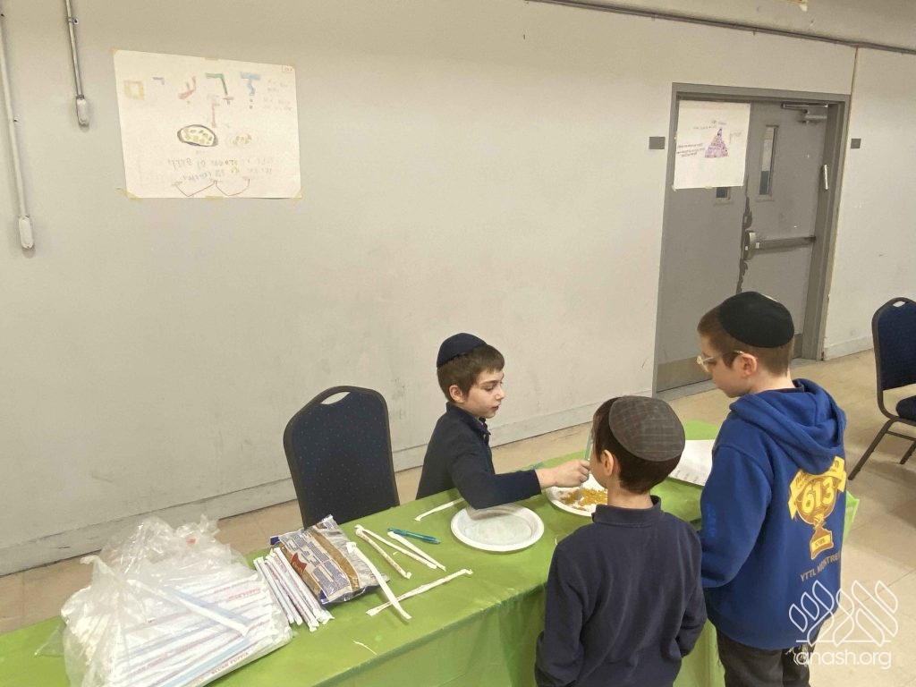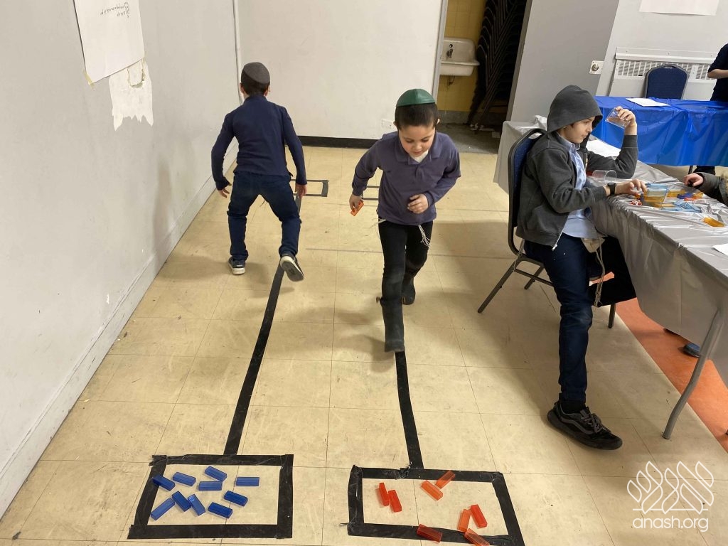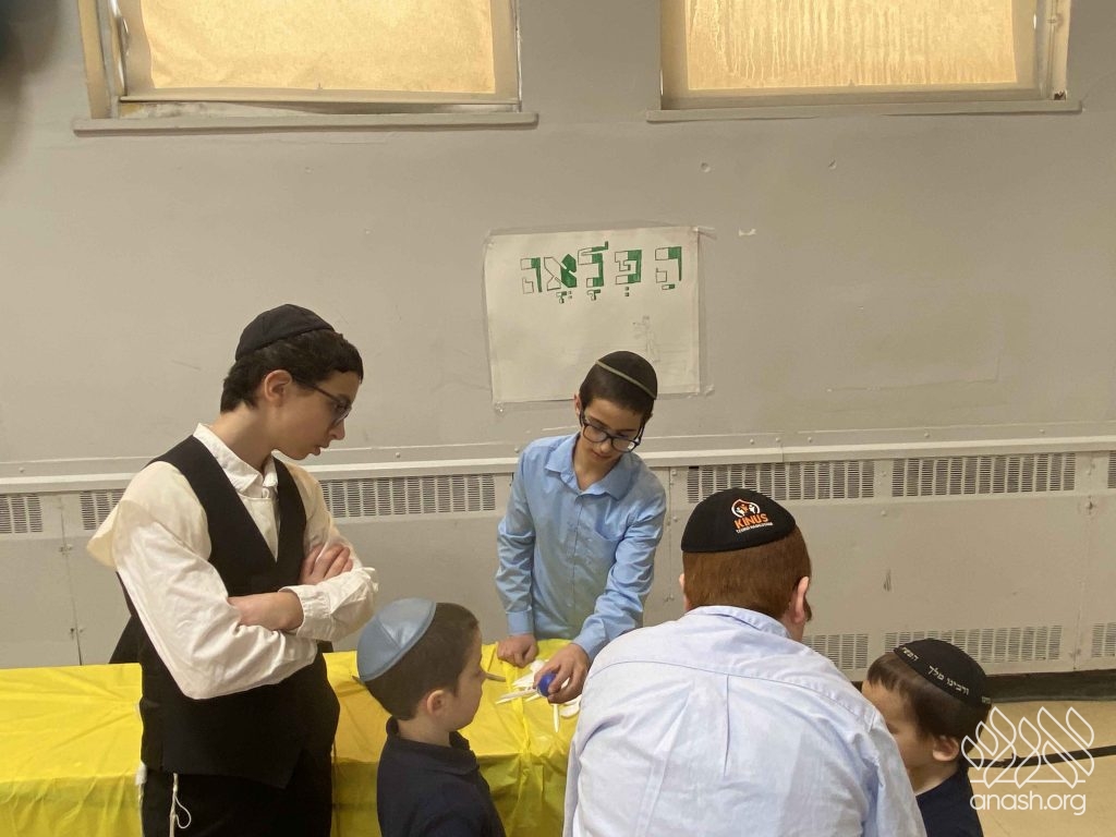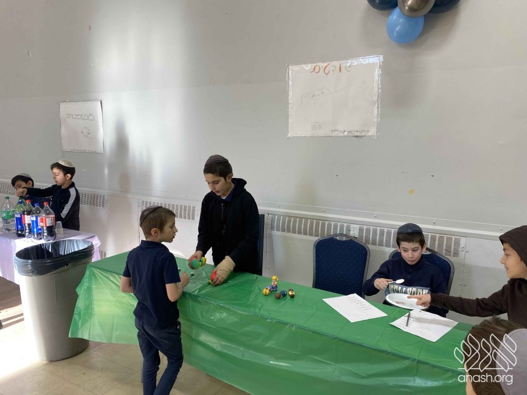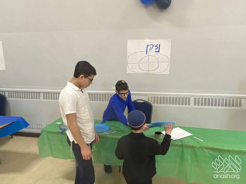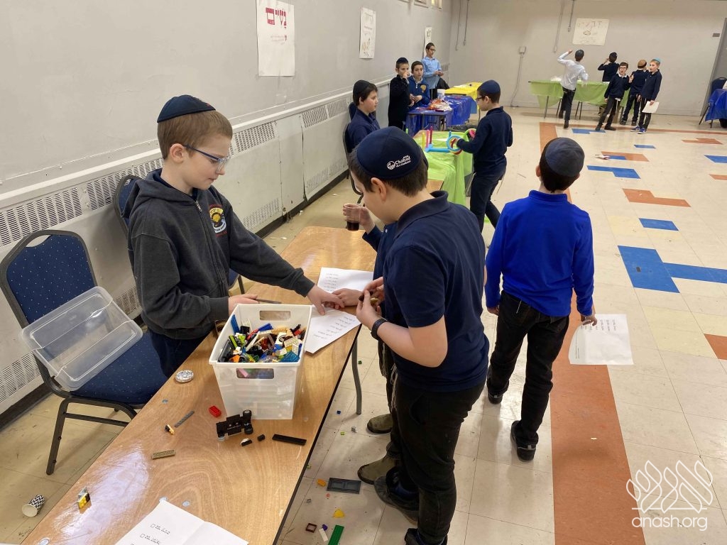 • Sefer Zmanim: The boys raced against the clock to find “Chametz” hidden inside a large box of Legos, simulating the Bedikas Chametz process.