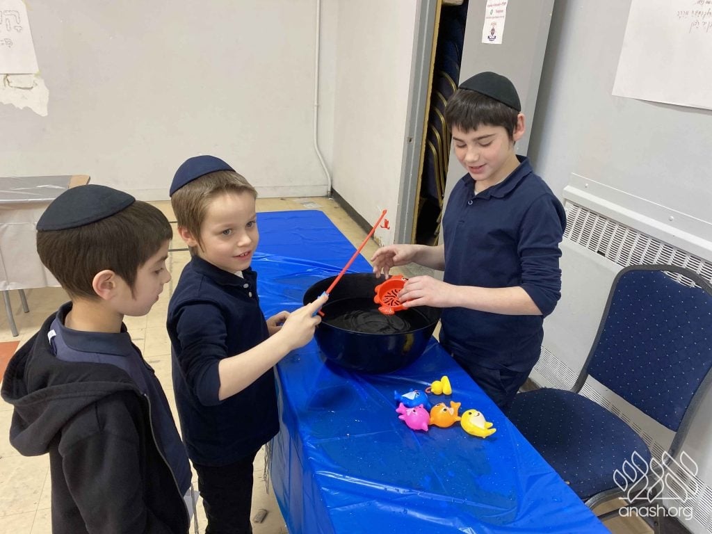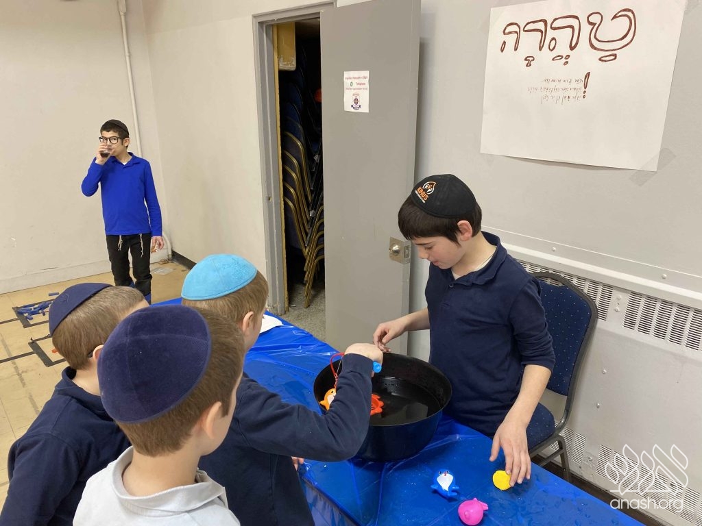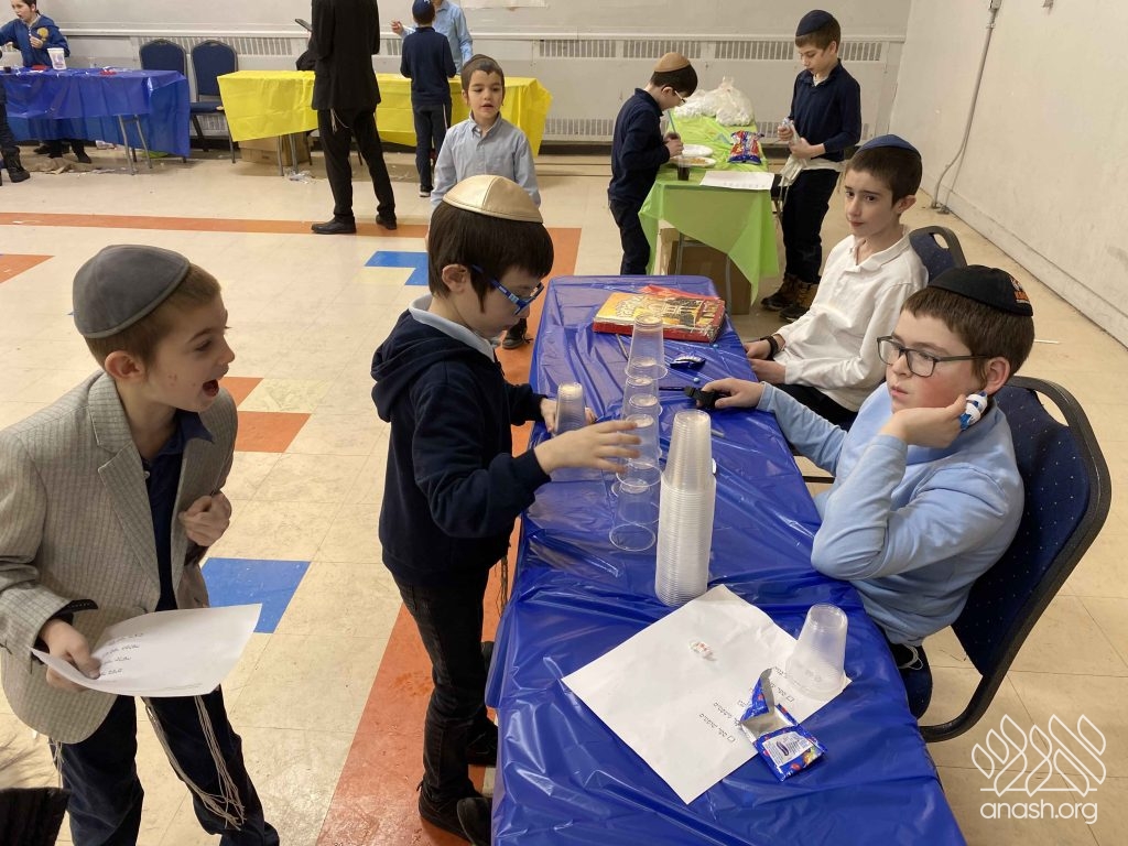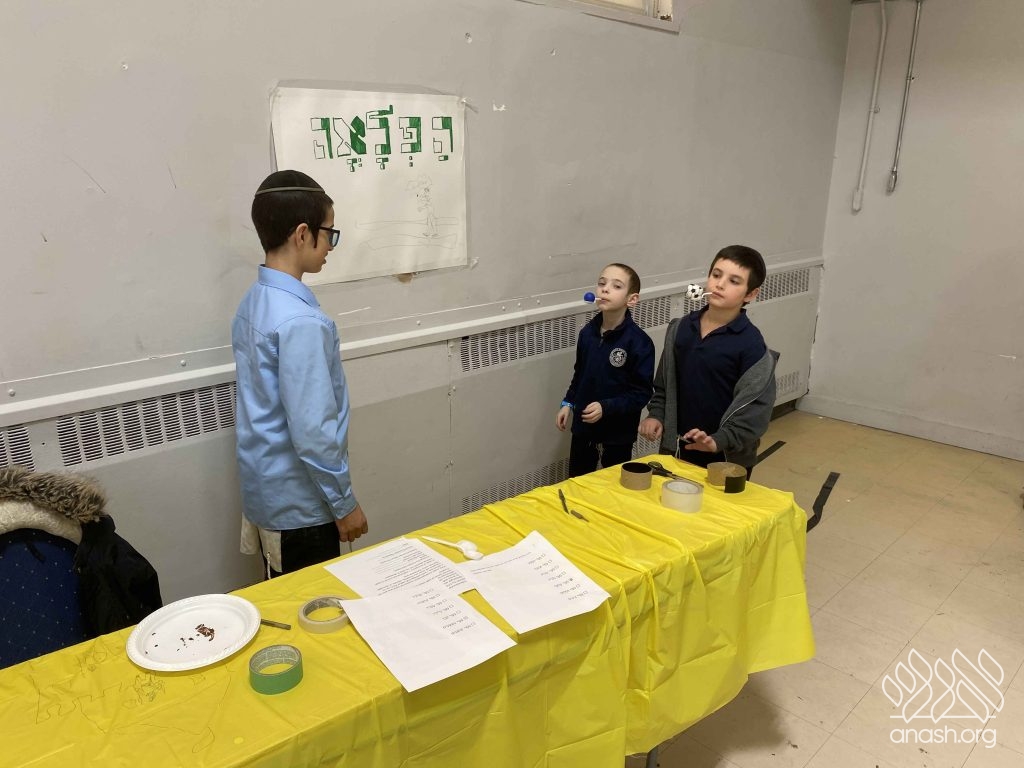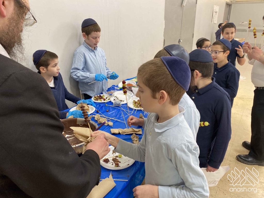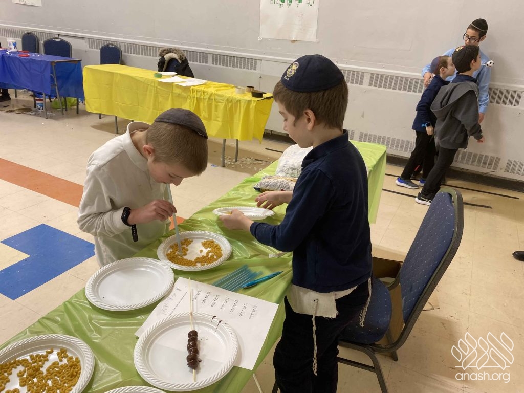 • Sefer Zmanim: The boys raced against the clock to find “Chametz” hidden inside a large box of Legos, simulating the Bedikas Chametz process.