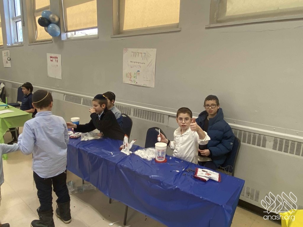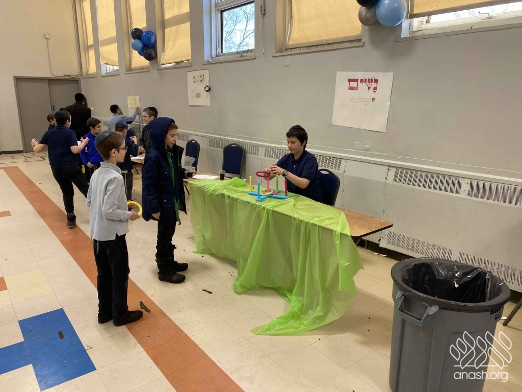 The festive atmosphere was set by Mark Besner, who filled the gym with balloons, and Rabbi Bochurberg, who kept the chayus high with lively music throughout the afternoon.