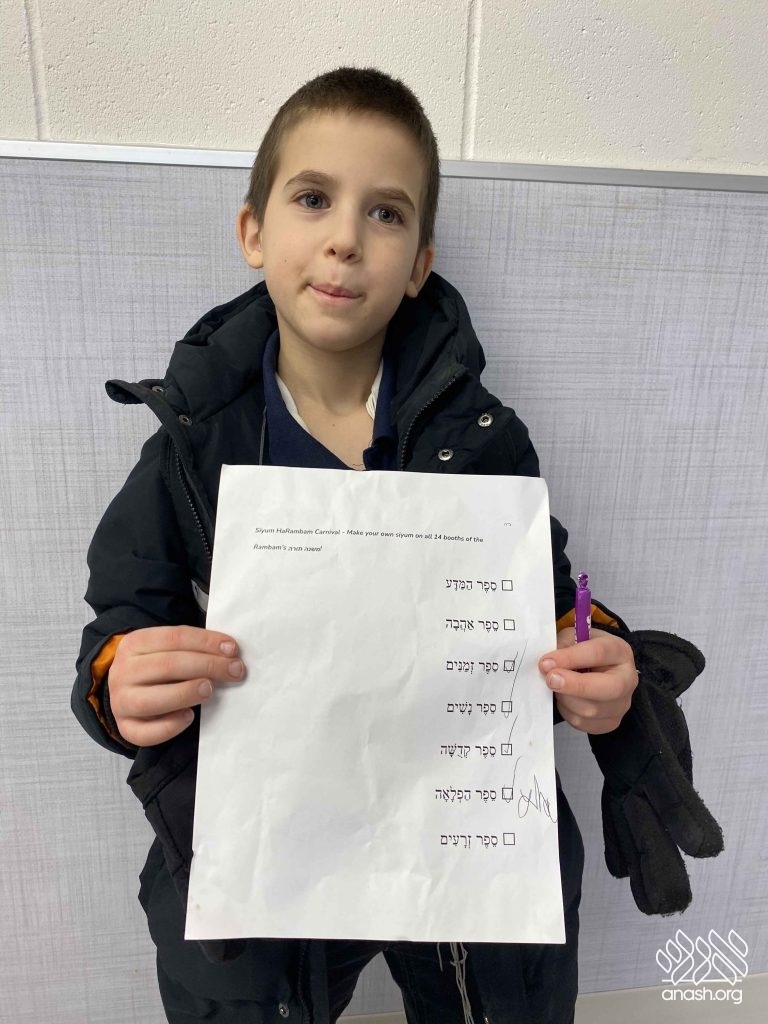 Following the rally, the gym was transformed into an interactive educational experience organized by Rabbi Bresinger. In a creative twist, the carnival featured 14 unique booths, each meticulously designed to represent one of the 14 books of the Mishneh Torah.